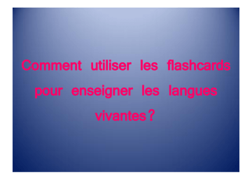 Comment utiliser les flashcards pour enseigner les langues vivantes? Quelles activités mener? Comprendre à l’oral Interaction orale Lire Parler en continu Écrire Quelles capacités? • Capacités (B.O. du 30 août 2007) Comprendre des textes courts et simples Copier des mots isolés et des textes courts Présenter quelqu’un Raconter une histoire courte stéréotypée Reproduire un modèle oral Répondre à des questions et en poser Se présenter Suivre des instructions courtes et simples Suivre le fil d’une histoire Comment utiliser les flashcards? • Le jeu du « point to ». • Le jeu du « what’s missing? » • Le jeu du « flashcards instructions » : jump to the elephant/ Walk to the lion… • Le jeu du « guess the flashcards » Is it big? Is it blue? // Has he got a jumper? Has it got two noses?....... • Le jeu du « match the flashcards and words ». Les élèves doivent faire correspondre le mot et la carte. Comment utiliser les flash-cards? • Le jeu du « Jumbled words and flashcards ». Ce jeu reprend le précédent, mais les enfants font la paire qu’ils souhaitent. • Le jeu du « slowly, slowly ». Ce jeu consiste à faire glisser doucement le bristol sur a flashcards et deviner le plus rapidement possible. • Le jeu du « repeat if it’s true ». Si ce qu’on dit est vrai l’élève répète si c’est faux il dit wrong. On veillera à accroître la difficulté. « It’s a horse » « It’s a red horse. » « It’s a big red horse » • Le jeu du « what is it? » Ce jeu permet le rebrassage de plusieurs leçons. It’s a big brown animal. It doesn’t leave in a farm. It likes meat. It’s a fierce animal. Comment utiliser les flash-cards? • Le jeu de kim. On revoit les flashcards. On les enlève et par deux les élèves en écrivent les noms ou se les remémorent à l’oral. • Flashcards groups. Apples touch your nose. Cakes jump. Spiders clap your hands…. • Ball game. On nomme une flashcard et on lance la balle à un élève qui doit nommer une autre flashcard. L’élève qui n’y parvient pas s’assoit. On continue jusqu’à ce que toutes les flash-cards aient été trouvées. • Flashcards bingo. 12 flashcards au tableau. Une grille de 6 cartes dans lesquelles les élèves écrivent les noms des flashcards qu’ils souhaitent. On retourne une à une les flashcards. Ils valident par une croix dans la case. Brown Bear, Brown Bear • Objectifs: Domaine lexical: les animaux (bear, horse, duck, frog...) les couleurs ( red, pink, purple, yellow…) les verbes to see, to look. les parties du corps animal pour les CM2. Domaine linguistique: la structure linguistique adjectif anté-posé l’emploi des pronoms personnels: I et you la structure linguistique interrogative ( do you..) et du pronom interrogatif : what Brown Bear, Brown Bear Mise en oeuvre: Les flash-cards: Elles seront utilisées pour la mémorisation du vocabulaire à l’aide du jeu de kim ( C2) et la création d’un album personnel pour une production d’écrit. Travail d’expression orale: Par groupe de 5 ( 10 minutes) les élèves liront leur album à la classe. Par groupes de 2 on pourra jouer à « Sherlock Holmes » ( information gap) en cherchant à reproduire l’animal fait par le partenaire. Brown Bear, Brown Bear La trace écrite: Pour les C2, on se contentera d’une trace écrite sur les couleurs et quelques animaux. On veillera à insérer une phrase dans laquelle on mettra en corrélation l’animal et la couleur. Pour les C3, la trace écrite pourra être la production de l’album que chacun aura créé. Les CE2 reproduiront à l’identique, les CM pourront nuancer les couleurs: dark blue, light green… De la même manière ils décriront les partie du corps, le tête sera bleue, la queue verte, les ailes oranges… Brown Bear, Brown Bear L’évaluation: Pour les C2: On évaluera les élèves à l’oral en leur demandant de produire des phrases avec des animaux de couleurs différentes. Pour les C3: L’évaluation se fera à l’écrit. Elle complètera l’évaluation orale faite lors de la présentation de l’album personnel à la classe. On fera dessiner selon une description et décrire selon un dessin. What colour are your knickers? • Objectifs: Domaine lexical: les animaux (horse, elephant, spider, crocodile…) les couleurs ( red, pink, purple, yellow…) le verbe de la possession à la troisième personne du singulier « has » Domaine linguistique: la structure linguistique adjectif anté-posé l’emploi des pronoms personnels: she et he What colour are your knickers? Mise en oeuvre: Les flash-cards: Elles seront utilisées pour la mémorisation du vocabulaire. Des bingos différents selon les niveaux. On peut créer un bingo avec des animaux et les couleurs en jouant sur la complexité de la phrase: un ou deux adjectifs de couleur ( knickers ou animal et knickers). What colour are your knickers? La trace écrite: Elle reprendra soit les phrases de l’album pour les C2, soit les phrases créées par les élèves lors de la phase d’expression écrite par les C3. L’évaluation: Pour les C2: On évaluera les élèves à l’oral en leur demandant de produire des phrases ou de répondre par right /wrong sur une description d’image ( flash-cards). Pour les C3: les difficultés seront croissantes selon le niveau. Le « right / wrong » des C2 pourra être repris. Pour les CE2 on fera relier l’animal à la bonne écriture du mot et colorier le caleçon dans la couleur demandée. Les CM1 reconstitueront des phrases à partir d’étiquettes. Enfin , on exigera des CM2 une production écrite de phrases sans aide annexe. Dear Zoo • Objectifs: Domaine lexical: les animaux (lion, snake, monkey, crocodile…) les adjectifs ( fierce, naughty, tall, grumpy…) les verbes to write, to send…. Domaine linguistique: le prétérit qui ne sera pas développé l’adjectif anté-posé la forme affirmative et la forme négative Dear Zoo Mi