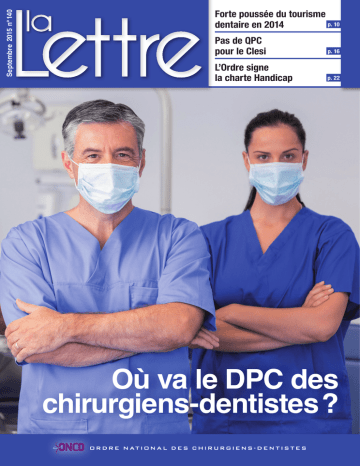 Septembre 2015 n° 140 Forte poussée du tourisme p. 10 dentaire en 2014 Pas de QPC pour le Clesi p. 16 L’Ordre signe la charte Handicap p. 22 Où va le DPC des chirurgiens-dentistes ? SOMMAIRE JURIDIQUE 25 DROIT À L’INFORMATION Restituer ou non les originaux des moulages dentaires au patient… 4 L’ÉVÉNEMENT 28 DÉONTOLOGIE Où la définition précise de l’« immeuble » impacte l’installation du praticien 32 CAPACITÉ PROFESSIONNELLE Un cas de demande de qualification en ODF rejeté Où va le DPC des chirurgiens-dentistes ? ACTUALITÉS 10 SOINS À L’ÉTRANGER Forte poussée du tourisme dentaire en 2014 16 FORMATION INITIALE Pas de QPC pour le Clesi 18 APPEL À CANDIDATURES Élection complémentaire des membres du Conseil national 20 STATISTIQUES Dès la maternelle, l’inégalité face à la carie demeure 22 HANDICAP Améliorer l’accès aux soins des personnes handicapées 24 EN BREF 2 LA LETTRE NO 140 Septembre 2015 PORTRAIT 34 PIERRE LE COQ Si tu vas à Rio 2016 LA LETTRE EXPRESS qu’il faut retenir 35 Ce pour votre exercice L’ÉDITO Indépendance et responsabilité Gilbert Bouteille Président du Conseil national Comment ne pas s’interroger sur la décision de l’Organisme gestionnaire du DPC (OGDPC) d’interrompre le financement du DPC des chirurgiens-dentistes pour 2015 ? Une décision d’autant plus incompréhensible que, dans le même temps, d’autres professions voyaient augmenter leur budget DPC pour cette même année 2015. Fort opportunément, la profession, plutôt que de se perdre en conjectures sur les raisons de cette décision, a décidé de regarder de l’avant en créant le Conseil national professionnel des chirurgiens-dentistes (CNP). L’Ordre est pleinement partie prenante du CNP – avec toutes les composantes de la profession – pour porter les valeurs d’une formation continue efficiente, indépendante et calibrée selon les besoins des chirurgiens-dentistes. Un objectif essentiel puisque le DPC va être réformé dans le cadre de la loi Touraine, dont l’adoption définitive est annoncée à l’automne. L’Ordre est d’autant plus partie prenante de ce CNP que la formation Porter les valeurs continue est d’une formation continue efficiente, indépendante et calibrée une obligation déontologique. selon les besoins des praticiens : À cet égard, telle est la vocation du CNP. aucun praticien ne peut revendiquer quelque indépendance thérapeutique que ce soit s’il ne dispose pas des compétences nécessaires à l’exercice de sa pratique. Il n’existe pas d’indépendance thérapeutique sans mise à jour de ses connaissances. Ce sont ces compétences qui permettent de proposer aux patients toutes les options thérapeutiques disponibles. Et ce qui garantit cette compétence, c’est précisément la formation continue et l’évaluation des pratiques, seules à même de permettre le maintien de ses connaissances au plus haut niveau. Pour garantir en permanence la qualité et la sécurité des soins auxquelles les patients ont droit. LA LETTRE NO 140 Septembre 2015 3 L’ÉVÉNEMENT DÉVELOPPEMENT PROFESSIONNEL CONTINU 4 LA LETTRE NO 140 Septembre 2015 L’ÉVÉNEMENT Où va le DPC des chirurgiens-dentistes ? L’Organisme gestionnaire du Développement professionnel continu (OGDPC) n’est plus en capacité de financer les sessions de DPC des chirurgiensdentistes depuis juin 2015, alors que les autres professions ont vu leur budget augmenter. Ce nouvel avatar du DPC, mal conçu et sous-financé, confirme que la profession doit reprendre la main sur sa formation continue et l’évaluation de ses pratiques. Sur fond de réforme de l’OGDPC par la loi Touraine, c’est tout l’enjeu du Conseil national professionnel des chirurgiens-dentistes (CNP), créé par la profession, qui entend donner au DPC des chirurgiensdentistes une orientation concrète et applicative. LA LETTRE NO 140 Septembre 2015 5 L’ÉVÉNEMENT DÉVELOPPEMENT PROFESSIONNEL CONTINU C’ est officiel : l’enveloppe du Développement profession nel continu (DPC) allouée aux chirurgiens-dentistes est totalement consommée depuis juin 2015. Une situation qui fait suite à une décision du Conseil de gestion de l’Organisme gestionnaire du DPC (OGDPC) réduisant à 5 millions d’euros le budget destiné à financer la formation continue obligatoire des praticiens. En conséquence, les sessions du deuxième semestre de l’année 2015 ne seront pas prises en charge par l’OGDPC. Il est grinçant de constater que notre profession est l’une des seules à être soumise à cette restriction budgétaire. En effet, la majorité des professions de santé ont vu leur budget non seulement maintenu, mais augmenté en 2015 via notamment une redistribution des reliquats des années précédentes. Comment interpréter ce « traitement de faveur » réservé aux chirurgiens-dentistes ? Au sein de la profession, c’est l’étonnement. Cette décision de l’OGDPC apparaît comme un nouvel avatar du ment de cette décision incompréhensible de l’OGDPC pour 2015, la dotation globale annuelle, pour les chirurgiens-dentistes, ne couvre que 20 % des besoins de financement. Le Conseil national professionnel des chirurgiens-dentistes entend jouer un rôle d’interface entre la profession et les pouvoirs publics pour agir et proposer plutôt que réagir et subir. pilotage à vue de ce système DPC mal né, mal conçu, et financièrement sous-doté. Sur ce dernier point en effet, et indépendam6 LA LETTRE NO 140 Septembre 2015 La clôture du financement des sessions de DPC 2015 pour les chirurgiens-dentistes a suscité des réactions d’incompréhen- sion tout à fait justifiées au sein de notre profession. À commencer par celle du Conseil national professionnel des chirurgiensdentistes (CNP), une structure associative récente et regroupant les instances professionnelles représentatives, dont l’Ordre. Dans un courrier adressé au ministère de la Santé et à l’O