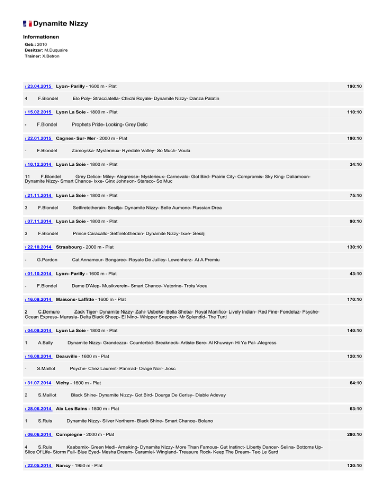 10 F.Blondel The Artista- Fleur Des Mers- One Lord- Dream Of Life- Pretty Luna- Zhayrem- Molesne Chop- Queen Of Holy- ParronSpring Anelia- Libido- Tocantins- Gloss- Stake Winnin