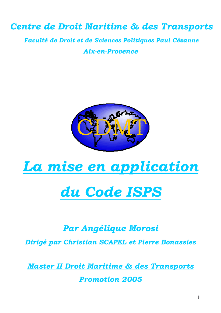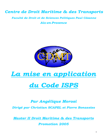 Centre de Droit Maritime & des Transports Faculté de Droit et de Sciences Politiques Paul Cézanne Aix-en-Provence La mise en application du Code ISPS Par Angélique Morosi Dirigé par Christian SCAPEL et Pierre Bonassies Master II Droit Maritime & des Transports Promotion 2005 1 Sommaire Glossaire p.3 Introduction p.5 I La menace actuelle p.7 1.1 Historique 1.2 La situation actuelle 1.3 Les objectifs principaux II La mise en application au quotidien 2.1 2.2 2.3 2.4 2.5 2.6 2.7 Les textes complémentaires en matière de sûreté du transport maritime L'organisation française Les navires/les armateurs Les ports Les gouvernements Les grandes lignes de l'application dans le reste du monde Les taux de conformité aux mesures ISPS III Conséquences et solutions 3.1 3.2 3.3 3.4 Les nouvelles clause des chartes parties Les difficultés nées de l’application directe Comment accroître la sûreté maritime ? Les dérives à éviter Conclusion p.7 p.14 p.25 p.26 p.26 p.46 p.51 p.55 p.62 p.62 p.71 p.74 p.74 p.76 p.78 p.84 p.88 Annexes p.91 Table des annexes Annexe I : Le Code ISPS, partie A Annexe II : Statistiques sur les actes de violence en mer Annexe III: Les autorités impliquées dans le contrôle du navire au port Annexe IV: Les équipements de sûreté Annexe V : Les taux de conformité internationaux au Code ISPS p.92 p.93 p.108 p.111 p.112 p.114 Bibliographie p.118 Tables des matières p.121 2 Glossaire AFFMAR : Affaires maritimes AIS : Automatic Identification System Système automatique d’identification ASEAN : Association of South East Asian Nations Association des nations du Sud-est asiatique CGVMSL : Corporation de gestion de la Voie maritime du Saint-Laurent CSN : Centre de sécurité des navires CSO : Company Security Officer Agent de sûreté de la compagnie (ASC) CSR : Continuous Synopsis Record Fiche synoptique continue (FSC) DoS : Declaration of Security Déclaration de sûreté FCL : Full Container Load Conteneur complet IAGS : Institute for the Analysis of Global Security Institut d’analyses sur la sûreté internationale IIF : International Islamic Front Front international islamique ILO : International Labour Organization Organisation Internationale du Travail (OIT) IMB : International Maritime Bureau Bureau Maritime International (BMI) IMO : International Maritime Organization Organisation Maritime Internationale (OMI) ISM Code : International Safety Management Code Code international de gestion de la sécurité des navires (Code ISM) ISPS Code : International Ship and Port Facility Security Code Code pour la sûreté des navires et des installations portuaires (Code ISPS) ISEAS : Institute of South East Asian Studies Institut d’études du Sud-est asiatique ISSC : International Ship Security Certificate Certificat international de sûreté du navire (CISN) LCL : Less than Container Load Conteneur de groupage MSC : Maritime Safety Committee Comité de la sécurité maritime NATO : North Atlantic Treaty Organisation 3 Organisation du Traité de l’Atlantique Nord (OTAN) PAM : Port Autonome de Marseille PFSA : Port Facility Security Assessment Evaluation de sûreté des installations portuaires (ESIP) PFSO : Port Facility Security Officer Agent de sûreté de l’installation portuaire (ASIP) PFSP : Port Facility Security Plan Plan de sûreté de l’installation portuaire (PSIP) RSO : Recognized Security Organization Organisme de sûreté reconnu (OSR) SAAG : South Asia Analysis Group Groupe d’analyses d’Asie du Sud SSA : Ship Security Assessment Evaluation de sûreté des navires (ESN) SSAS : Ship Security Alert System Système d’alerte de sûreté du navire (SASN) SSO : Ship Security Officer Agent de sûreté du navire (ASN) SSP : Ship Security Plan Plan de sûreté du navire (PSN) Soc : Statement of Compliance Déclaration de conformité SOLAS : Safety of Life at Sea Convention Convention pour la sauvegarde de la vie humaine en mer UNCITRAL : United Nations Commission on International Trade Law Commission des Nations Unies pour le droit commercial international (CNUDCI) UNCTAD : United Nations Conference on Trade and Development Conférence des Nations Unies sur le commerce et le développement (CNUCED) VMSL : Voie maritime du Saint-Laurent WCO : World Customs Organization Organisation Mondiale des Douanes (OMD) 4 Introduction L’activité maritime constitue le cœur du commerce international. Son poids est tel qu’après les attentats du 11 septembre 2001, il était inconcevable de ne pas l’intégrer dans la politique globale de sûreté alors mise en place. Dès novembre 2001, lors de sa 22ème session, l’Organisation maritime internationale (OMI) demande à deux de ses comités1 de s’atteler à la création de normes de sûreté visant les navires et les ports. Puis, suite à la Conférence diplomatique qui s’est tenue du 9 au 13 décembre 2002 au siège de l’OMI à Londres, un certain nombre d’amendements à l’annexe de la Convention internationale pour la sauvegarde de la vie humaine en mer telle que modifiée, dite Convention SOLAS de 19742, a été adopté en présence de 108 des gouvernements originellement contractants ainsi que d’observateurs de pays membres, de pays associés, d’agences spécialisées d’organisations des Nations non-gouvernementales3. Unies, d’organisations intergouvernementales, et Les mesures qui ont le plus révolutionné le secteur maritime concernent la mise en place du Code international pour la sûreté des navires et des installations portuaires, le Code ISPS4. Devant l’urgence de la situation, la procédure de l’amendement tacite a été utilisée. La règle d’adoption a été la suivante : plus d’un tiers des gouvernements contractants à la Convention, ou des gouvernements contractants dont les flottes marchandes représentaient au moins 50% du tonnage brut de la flotte mondiale des navires de commerce, devaient manifester leur opposition avant le 1er janvier 2004. Le Code ISPS est en