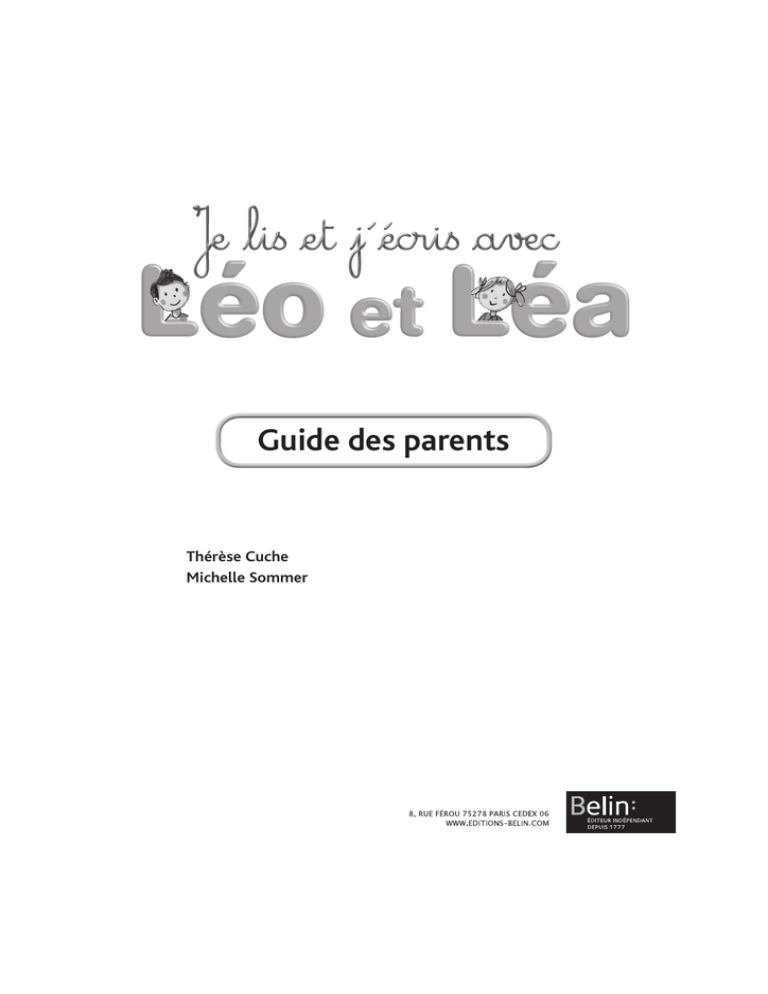 Guide des parents Thérèse Cuche Michelle Sommer Préface La méthode Lire avec Léo et Léa est conçue pour favoriser une collaboration efficace entre l’école et la famille. En effet, il nous semble important que les parents adhèrent à la démarche pédagogique proposée à leur apprenti-lecteur. L’enfant qui vient de maternelle a besoin de sentir qu’il est accompagné dans l’apprentissage par le désir de ses parents. Si les parents ont une perception négative de la méthode, ou s’ils comprennent mal comment l’utiliser au moment des devoirs, l’enfant en prend rapidement conscience. Suivre et vérifier régulièrement à la maison les acquisitions de l’enfant permet éventuellement de l’aider à s’approprier des connaissances qu’il n’a pas été en mesure d’assimiler en classe ; il peut ainsi continuer à progresser au même rythme que les autres élèves et le travail de l’enseignant s’en trouve facilité (l’hétérogénéité d’une classe est toujours difficile à gérer). La collaboration entre l’école et les parents de l’enfant est particulièrement utile dans le cas d’un enfant un peu immature à l’arrivée au CP. Quand la transition entre la maternelle et le CP reste aléatoire, la participation active des parents peut jouer un rôle fondamental et permettre à l’enfant de s’engager dans l’apprentissage. Ce guide, conçu pour l’accompagnement individuel, est donc destiné aux parents, mais aussi à toute personne susceptible d’aider l’enfant individuellement. Le code de la propriété intellectuelle n’autorise que « les copies ou reproductions strictement réservées à l’usage privé du copiste et non destinées à une utilisation collective » [article L. 122-5] ; il autorise également les courtes citations effectuées dans un but d’exemple ou d’illustration. En revanche « toute représentation ou reproduction intégrale ou partielle, sans le consentement de l’auteur ou de ses ayants droit ou ayants cause, est illicite » [article L. 122-4]. La loi 95-4 du 3 janvier 1994 a confié au C.F.C. (Centre français de l’exploitation du droit de copie, 20, rue des GrandsAugustins, 75006 Paris), l’exclusivité de la gestion du droit de reprographie. Toute photocopie d’œuvres protégées, exécutée sans son accord préalable, constitue une contrefaçon sanctionnée par les articles 425 et suivants du Code pénal. © Éditions Belin, 2010. © Éditions Belin, 2010 ISBN 2-7011-4053-6 Introduction 4 L’apprentissage pas à pas 9 Les mots de Léa et Léa 28 Bibliographie 48 © Éditions Belin, 2010. Sommaire Introduction Grandir pour lire L’enfant de 6 ans qui apprend à lire traverse une période complexe de modification profonde de son rapport aux autres et au monde. Si l’enfant ne parvient pas à « grandir », à accéder à une maturité suffisante, l’apprentissage de la lecture peut être laborieux ou même compromis. Nous avons donc choisi de vous apporter ici un éclairage sur les changements qui doivent intervenir dans la structuration de l’enfant de 6 ans. Ces éléments vous aideront peut-être à trouver les attitudes, les paroles susceptibles d’encourager l’apprenti lecteur à « grandir ». Quels sont les changements qui doivent intervenir dans la structuration de l’enfant H (la construction de sa personnalité), pour qu’il soit en mesure d’apprendre à lire au CP ? L’enfant est d’abord engagé dans une relation privilégiée, à 2, avec sa mère : il y a peu de distance entre lui et la mère et, dans l’imaginaire de l’enfant, lui et maman, c’est quasiment « pareil », (l’enfant perçoit sa mère comme un semblable, auquel il s’identifie). Il est dans l’illusion d’un « tout », peu différencié mais rassurant. Cette relation avec la mère va devoir évoluer progressivement, pour permettre que s’installe dans un premier temps le langage ; l’aboutissement de ce même processus permettra ensuite à l’enfant d’avoir la maturité nécessaire pour le passage au CP et l’acquisition de la lecture. (L’âge habituel pour le passage au CP est fixé approximativement à 6 ans. Mais chaque enfant est différent. Certains peuvent faire preuve d’une maturité suffisante et manifester leur désir d’apprendre à lire avant 6 ans. Il faut toutefois veiller alors à ne pas amener ces enfants à quitter trop tôt les fructueuses élaborations imaginaires de la « petite enfance ».). © Éditions Belin, 2010. La maturité dépend de plusieurs processus qui se superposent. Ils sont à l’œuvre et se remanient de la naissance à l’adolescence. O Il est nécessaire qu’une distance symbolique s’installe entre l’enfant et la mère. Une 1re étape dans cette prise de distance va permettre, par exemple, la scolarisation en maternelle ; un enfant qui n’accepte pas cette distance sera bien difficile à scolariser. Il pleure, ne s’intéresse pas à ce que lui propose l’enseignant. Il est trop exclusivement tourné vers maman. 4 Je lis et j’écris avec Léo et Léa À l’âge de la Maternelle, vous pouvez préparer utilement l’enfant à l’apprentissage de la lecture en lui lisant beaucoup d’histoires, même de façon répétitive. Ainsi l’enfant acquiert du langage et se familiarise avec le langage écrit, plus riche et plus structuré que le langage oral courant. Le terme de « maternelle » évoque encore maman. Le passage au CP représente une autre étape importante dans cette prise de distance par rapport à la mère. La prise de distance par rapport à sa mère permet progressivement à l’enfant de devenir autonome. Le désir d’apprendre à lire dépend de cette maturation. Sans désir autonome, distinct du désir de la mère, l’enfant n’a pas envie d’acquérir lui-même du savoir : c’est l’adulte qui sait à sa place (situation parfois trop confortable pour que l’enfant y renonce !). O L’enfant va progressivement être con