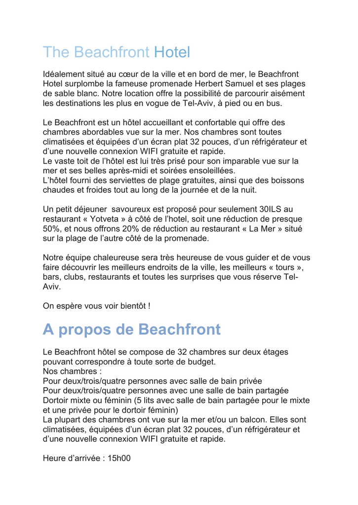 The Beachfront Hotel A propos de Beachfront