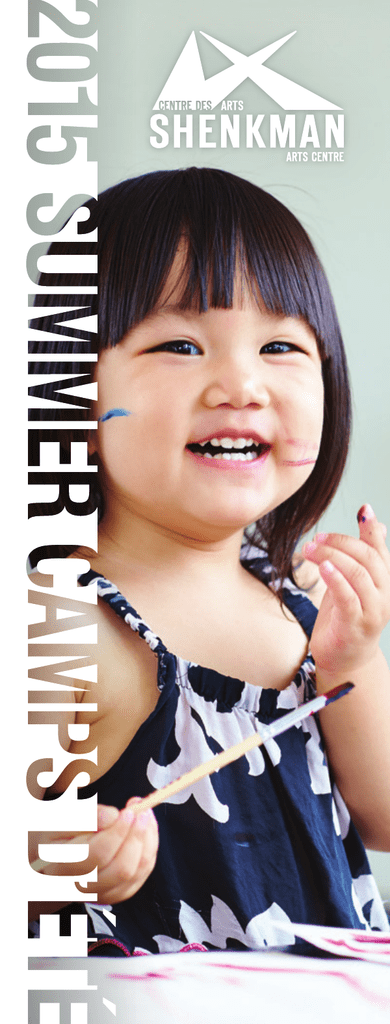 CAMPS D’ÉTÉ 2015 SUMMER CAMPS AGES WEEK 1 WEEK 2 June 29 - July 3 (4 days) WEEK 3 July 6 - 10 WEEK 4 July 13 - 17 CAMPS ARE OFFERED IN ENGLISH UNLESS INDICATED | LES CAMPS SONT OFFERTS EN ANGLAIS, SAUF CEUX INDIQUÉS (FR) = FRANÇAIS | (B) = BILINGUAL/BILINGUE WEEK 5 July 20 - 24 WEEK 6 July 27 - 31 WEEK 7 August 4 - 7 (4 days) WEEK 8 August 10 - 14 WEEK 9 August 17-21 August 24-28 OYP THEATRE SCHOOL / ÉCOLE DE THÉÂTRE OYP 6-8 8-11 Let's Play $200 Jr. Showtime $200 12+ Jr. Showtime Teens Act on Stage! $255 $255 Jr. Shakespeare $255 Teens Act Shakespeare $255 Jr. Musical Teens Musical (2 weeks) $255 $510 Teens On-Camera Film! $255 Jr. Stage and Music $255 Camp théâtre musical (FR) 255 $ Improv!$200 Improvisation ! (FR) 200 $ Anne of Green Gables $260 Island Adventures $230 1001 aventures (FR) 260 $ Une semaine avec Frida Kahlo : dessin, pastels et peinture (FR) 230 $ Drawing & Painting the Portrait $260 Jr. Showtime $255 Teens Act on Stage! $255 Monet’s Garden $260 Let's Play $255 Jr. Showtime $255 OTTAWA SCHOOL OF ART - ORLÉANS CAMPUS / ÉCOLE D’ART D’OTTAWA - CAMPUS D’ORLÉANS 6-8 Undersea Explorer! L’aventure du cirque (FR) 9-12 Your Ticket to an Algoma Railway Adventure – Painting $260 Medieval Art 260 $ Créatures et mondes fantastiques (FR) 260 $ Les chevaux : dans l’art à travers l’histoire (FR) 260 $ 5 Paintings in 5 Days $260 Lost Civilizations – Mixed Media $260 Mythologie grecque – Dessin et sculpture (FR)260 $ 13-15 Explore Your Creativity / Explorez votre créativité (B)$260 $260 Art urbain 101 – dessin (FR) 260 $ Draw, Paint, Sculpt, Create! $260 $260 L’art autour du monde (FR) 260 $ Portraits with Personality – Painting / Plus de personnalité pour vos portraits (B)$260 Realistic Drawing $260 Pottery and Dance Pottery and Dance Pottery and Dance Créez votre légende : L’art de l’imaginaire (FR) Venice – Mixed Media $230 L’art et la ville – dessin et peinture (FR) 230 $ 260 $ Lions, Tigers, and Bears, Oh My! $260 Les royaumes de glace – dessin et peinture (FR) 260 $ Famous Painters – Mixed Media $260 Dessin et sculpture (FR) 260 $ Vikings et dragons (FR) 260 $ Northbound Passage to Mystery! – Landscape Painting / Les mystères de la Côte Ouest ! – peinture de paysage (B)$260 All Things Irish – Mixed Media The Art of Photography / L’art de la photographie (B)$260 Comics / Bande dessinée (B)$260 Digital Art / Art numérique (B)$260 Going, Going, Abstract! – Painting / Apprivoiser l’abstrait en peinture (B)$260 Mixed Media & Art Journaling $304 Pottery and Dance $304 Pottery and Dance $243.25 Danse et poterie (FR) 304 $ Danse et poterie (FR) 304 $ $304 Pottery and Dance $304 Pottery and Dance $243.25 Pottery and Dance $304 Danse et poterie (FR) 304 $ $304 The Director’s Cut: I Wanna Rock The Director’s Cut: Feature Film Making $304 Videomaking for the Smartphone Kid $304 $230 Superheroes / Superhéros (B)$260 CITY OF OTTAWA / VILLE D’OTTAWA 6-8 6-9 Pottery and Dance 9-12 9-14 Pottery and Dance $304 $304 Rock, Paper, Scissors – Stop Motion Film Making$304 $304 Danse et poterie (FR) 304 $ The Director’s Cut: Claymation$304 The Director’s Cut: Claymation$304 The Director’s Cut: Feature Film Making $243.25 10-15 GLOUCESTER POTTERY SCHOOL / ÉCOLE DE POTERIE DE GLOUCESTER 7-13 Children's Handbuilding Camp (Half Day) $140 12+ Teen/Adult Wheel Camp $275 Teen/Adult Wheel Camp (Half Day) $150 SEMAINE 3 SEMAINE 4 ÂGES SEMAINE 1 SEMAINE 2 29 juin - 3 juillet (4 jours) 6 - 10 juillet For full descriptions of summer camps, visit our website at 13 - 17 juillet Children's Handbuilding Camp (Half Day) $140 20 - 24 juillet SHENKMANARTS.CA SEMAINE 5 27 - 31 juillet SEMAINE 6 4 - 7 août (4 jours) Pour obtenir la description complète des camps d’été, visitez notre site web à SEMAINE 7 10 - 14 août SEMAINE 8 17 - 21 août ARTSHENKMAN.CA SEMAINE 9 24 - 28 août $260 KEEP IT EASY THIS SUMMER Shenkman Arts Centre is close to home and offers a huge variety of camps that are big on quality, learning and fun. Camps are offered by the resident programming partners at the Centre: Gloucester Pottery School, Ottawa School of Art – Orléans Campus, OYP Theatre School and the City of Ottawa. Professional instructors working in their fields ensure a high standard of excellence. Mixing learning and fun is what we do best at Shenkman Arts Centre. Children start the day in specialized studios amid a captivating, creative environment. But there are also plenty of opportunities to get outside whether to film, research, draw, lunch, or just to blow off some steam. Some camps have additional outings to local pools, and parks. Most camps offer before and after care programs. CET ÉTÉ, VISEZ LA SIMPLICITÉ Le Centre des Arts Shenkman est près de chez vous et vous offre une grande variété de camps de haute qualité et débordant de nouvelles choses à apprendre tout en s’amusant. Les camps sont offerts par les patenaires de programmation résidents du Centre : l’École de poterie de Gloucester, l’École d’art d’Ottawa – Campus d’Orléans, l’École de théâtre OYP et la Ville d’Ottawa. Un gage d’excellence est assuré pas des instructeurs professionnels comptant de l’expérience dans leur domaine. Marier l’apprentissage et le plaisir est ce que nous faisons de mieux au Centre des Arts Shenkman. Les enfants débutent leur journée dans des studios spécialisés au milieu d’un environnement créatif captivant. Cependant, les occasions ne manquent pas de sortir à l’extérieur que ce soit pour filmer, faire de la recherche, dessiner, prendre le dîner ou simplement dépenser de l’énergie. Quelques camps bénéficient aussi de sorties supplémentaires dans les piscines locales et les parcs. La majorité des camps offrent un programme de service de garde avant et après les heures de camps. REGISTRATION / INSCRIPTIONS Online / en ligne : SHENKMANARTS.CA SEE CLASSES + CAMPS / VOIR COURS + CAMPS By phon