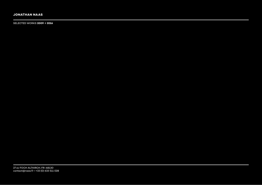 JONATHAN NAAS SELECTED WORKS 2009 → 2016 27 av FOCH ALTKIRCH, FR-68130 [email protected] • +33 (0) 633 511 028 BORN IN 1987 IN EASTERN FRANCE. RESIDES AND WORKS BETWEEN BASEL, STRASBOURG AND MULHOUSE. 2010 → 2012 MASTER OF VISUAL ART EUROPEAN ART ENSEMBLE (with honors) ÉCAL, University of Art and Design from Lausanne 2009 → 2010 BACHELOR OF VISUAL ART (visarte prize) ÉCAL, University of Art and Design from Lausanne 2006 → 2009 DNAP ART DIPLÔME NATIONAL D’ART PLASTIQUE HEAR, Rhine University of Arts from Mulhouse APPROACH My plastic work is nourished by nonsense, esotericism, psychedelism and folklore-induced protocols, relying on an exploration of the interface between myth and knowledge. My practice is dominated by paced, minimalist and radical painting, narrating reclaimed objects and forms in dark, dystopian installations. This way I interrogate the evolution of knowledge and its passing, of its transcription from oral to written speech, by reformulating reality through fiction, like a storyteller emphasizing a present to suggest a possible elsewhere. Mon travail plastique est empreint d'absurde et de protocoles nourris de folklore, d'ésotérisme et de psychédélisme, s'appuyant sur l'exploration de l'interface entre le mythe et la connaissance. Ma pratique est dominée par une peinture minimaliste, radicale et rythmée mettant en récit des formes et des objets récupérés, dans des installations sombres et dystopiques. Je questionne ainsi l'évolution du savoir et de sa transmission, de sa transcription entre oralité et écrit, en reformulant la réalité au travers de la fiction à la façon d'un conteur accentuant un présent, suggérant la possibilité d'un ailleurs. SOLO & GROUP EXHIBITION MASTERPIECE Saint-Valentin Art Space, Lausanne 2014 → 2016 INACT FESTIVAL La Semancerie, Strasbourg ATELIERS OUVERTS 2016 Le Domaine, Altkirch SALON DES RÉALITÉS NOUVELLES Parc Floral, Paris KASERN Roebelin barracks, Ferrette CES JOURS Foyer Marie-Pascale Pean, Mulhouse 5 MINUTES DE PLUS Saint-Jean Chapel, Mulhouse THE GALACTIC YODEL ORDER SOLO EXHIBITION Zwanzigquadratmeter Gallery, Berlin Ø(FF)15 Downtown, Mulhouse DE GUERRE EN GUERRE Halle au Blé, Altkirch OB&F14 Le Domaine, Altkirch PROMENADE SPATIALE AU FIL DES ONDES SOLO EXHIBITION EDF Museum Électropolis, Mulhouse 2013 SOL LEWITT LOVES PANCAKES ZIP Gallery, Basel OB&F13 Le Domaine, Altkirch SOCIAL LOVE, MUSIC & ART Saint-Valentin Art Space, Lausanne MASTER READING Saint-Valentin Art Space, Lausanne 2012 EXPOSITION DES DIPLOMÉS ÉCAL, University of Art and Design, Lausanne NÉO-MASO Studio Fleury, Geneva ÉCAL PROMOTION 2012 ELAC Gallery, Lausanne LE RETRANCHEMENT Manoir de Martigny, Martigny PERMIS DE CONSTRUIRE Ateliers Jack Priess, Mulhouse SYMPOSIUM SYNDROME HKG, Basel 2011 IN GIRUM IMUS NOCTE ET CONSUMIMUR IGNI Espace Arlaud, Lausanne THE LAST FIRST TIME Têtard shool of Art, Lausanne 2010 FORGING STEEL AND LAYING STONE CRAC Alsace, Altkirch BMBP Banca Monte Paschi Belgio, Brussels JEUNE CRÉATION Le CentQuatre, Paris LE PARCOURS DE L'ART European Poetry Center, Avignon WOUAH ! LE TIGER FLAMBOYANT DUO w/ Pascal Auer La tour du Diable, Mulhouse DESBIONE D’ORO Stella Solaris, Brussels DISTINCTIONS Hall Stefan Kudelski, Lausanne THE FUTURE WAY SO BLACK solo exhibition Niele Torini Gallery, Lausanne RENDEZ-VOUS DES JEUNES PLASTICIENS Culturel Center, Toulon (La Garde) EDITIONS ÉCAL, University of Art and Design, Lausanne CLUSTERFUCK AESTHETICS w/ Damien Airault HEAR, Rhine University of Arts, Mulhouse THE SWEET SONG OF DEATH ÉCAL, University of Art and Design, Lausanne 2009 WORKSHOP'S ÉCAL, University of Art and Design, Lausanne DARK SIDE OF... Halle au Blé, Altkirch EXP.020 HEAR, Rhine University of Arts, Mulhouse WEEK-END DE L'ART CONTEMPORAIN Fine Arts Museum, Mulhouse 5H06 Polaris Gallery, Paris MISCELLANEOUS 2009 EXP.017 HEAR, Rhine University of Arts , Mulhouse 2016 VOLUME WORK ASSISTANT MANAGER 2007 → 2009 HEAR, Rhine University of Arts, Mulhouse ARTIST ASSISTANT TO GILLES BRUNI Stuwa Contemporary Art Tour, Bisel WORKSHOP w/ Pierre Thillet HEAR, Rhine University of Arts, Mulhouse EXHIBITION CURATOR, KASERN w/ Anne Zimmermann Roebelin barracks, Ferrette WORKSHOP w/ Boris Rebetez HEAR, Rhine University of Arts, Mulhouse TEACHING WORKSHOP EVIL Mulhouse, Nancy & Châlon WORKSHOP MAGNETIC ANIMALS HEAR, Rhine University of Arts, Mulhouse FREELANCE ART DIRECTOR 2009 → 2016 Overblitz collective, Mulhouse ANIMATION & MEDIATION ASSISTANT 2007 → 2008 CRAC Alsace, Altkirch LES JEUDI’S, ESSAIS SONIC Pompidou Center, Paris FENÊTRES OUVERTES HEAR, Rhine University of Arts, Mulhouse 2008 TRANCHES DE QUAI #8 w/ Nicolas Moulin HEAR, Rhine University of Arts, Mulhouse DÉRAPAGES w/ Cécile Meynier HEAR, Rhine University of Arts, Mulhouse SOUND'GO FESTIVAL Les Tuileries, Altkirch THE WOODEN HOUSE FESTIVAL Le Banholtzberg, Hirsingue FÊTE DE LA MUSIQUE DUO w/ Pascal Auer La Verrerie, Mulhouse EN EAUX TROUBLES... Fête de l’Eau, Wattwiller 2007 2014 MNAH DRUMLESS TOUR France, Belgium & Swiss COLLECTIONS 2013 PUBLIC COLLECTION ELECTROPOLIS EDF Museum Électropolis, Mulhouse TEACHING WORKSHOP La Passerelle, Rixheim PUBLIC COLLECTION VILLE D’ALTKIRCH Ville d’Altkirch LECTURES & CONFERENCES ABOUT GNIST Lausanne, Strasbourg & Basel PRIVATE COLLECTIONS Switzerland, Belgium and France MULHOUSE CITY WORKSHOP 2011 → 2013 Jacques Preiss, Mulhouse MOUCHE, PROLIFÉRATION, CONTRÔLE w/ Francisco ruiz del infanté HEAR, Rhine University of Arts, Mulhouse 2012 ACTION D’AMEUBLEUMENT w/ Éric Madeleine HEAR, Rhine University of Arts, Mulhouse TEACHING WORKSHOP THE LAST FIRST TIME Têtard shool of Art, Lausanne LA NUIT DES MUSÉES Fine Arts and Historical Museum, Mulhouse L’AIR DE RIEN w/ Franck David HEAR, Rhine University of Arts, Mulhouse DIALOGUES No Name Gallery, Mulhouse AWARDS & RESIDENCIES 2016 35HEURES Saint-Jean Chapel, Mulhouse 2011 ZQM RESIDENCIE Zwanzigquadratmeter Gallery, Berlin 2010 VISARTE VAUD PRIZ
