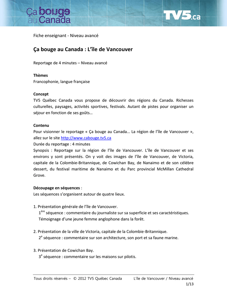 Fiche Avancé - Ça bouge au Canada