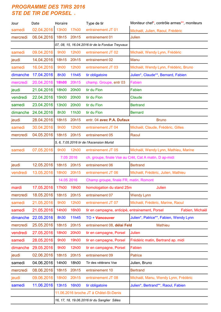 Programme - Société de tir de Porsel