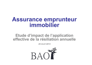 Assurance emprunteur immobilier Etude d’impact de l’application effective de la résiliation annuelle 25 Avril 2013 Introduction Le projet de loi bancaire intègre un volet «consommateur» dans son article 18 sur l’assurance emprunteur, visant à protéger la liberté de choix des emprunteurs et renforcer la concurrence sur ce marché dont les marges sont anormalement élevées. Les députés puis les sénateurs (*) ont déposé des amendements pour mettre en cohérence le code de la consommation avec le code des assurances et clarifier le droit à résiliation annuelle de l’emprunteur, sous condition de présenter une assurance de substitution équivalente en niveau de garanties au prêteur. Une étude d’impact a été souhaitée par le ministère des finances, lequel se préoccupait d’éventuelles déstabilisation et démutualisation de ce marché. BAO, société d’études et de conseil en actuariat, historiquement spécialisée sur l’assurance emprunteur, qui a déjà éclairé les débats sur ce marché (Analyse comparative des garanties assurances emprunteur Avril 2011 et Février 2013, Les jeunes et le marché de l’assurance emprunteur Janvier 2010 et Octobre 2011), s’est saisie de cette préoccupation et livre ses analyses et conclusions sur cette question. 2 (*) rappel des débats en annexe 6 Sommaire 1. TAEA – l’assurance emprunteur n’est pas accessoire dans le prix 2. Synthèse des tarifs du marché 3. Marge des contrats emprunteur immobilier par segment 4. Mutualisation des contrats et risque de « démutualisation » 5. Résiliation annuelle et risques de déstabilisation 6. Motivations de changement de contrat et de refus 7. Les pratiques actuelles de résiliation/substitution Annexes - Annexe 1 : croissance de la mortalité par âge, impact de la sélection médicale - Annexe 2: les marges crédit en France - Annexe 3 : Offres de prêt, assurance obligatoire ou facultative, résiliation annuelle - Annexe 4 : Les garanties des contrats d’assurance emprunteur, critères de différenciation - Annexe 5: Comportement des jeunes emprunteurs, octobre 2011, étude BAO - Annexe 6 : Rappel des débats parlementaires sur la résiliation annuelle (loi bancaire 1ère lecture) - Annexe 7 : facteurs explicatifs de l’amélioration des marges des contrats bancaires 1990-2013 3 1- le Taux Annuel Effectif de l’Assurance Avril 2013 Le poids de l’assurance dans le crédit immobilier Capital Initial Emprunté Durée (mois) Taux nominal Mensualité hors assurance Frais de dossier (en% du CI) Sureté (en % du Capital Initial) Taux assurance 1 tête (en % C.I. / an / personne) (*) Nombre d'assurés à 100% (**) Mensualité assurance 150 000 € Décomposition Contribution du coût total du au TEG crédit 240 3,20% 847 € 0,50% 1,00% Intérêts du crédit Frais de dossier Sureté Crédit seul = TEG hors assurance 3,20% 0,06% 0,11% 3,37% 53 279 € 750 € 1 500 € 55 529 € Assurance = TAEA 1,21% 22 500 € Coût total du crédit 4,58% 78 029 € Poids de l'assurance rapportée au coût total du crédit 26% 29% Poids de l'assurance rapportée au coût du crédit (hors assurance) 36% 41% 0,375% 2 94 € Hypothèses retenues: caractéristiques médianes des offres de crédit actuelles (montant, durée, taux, assurance) (*) Taux médian des banques (**) 80% des emprunteurs empruntent en couple et depuis 2008 les banques ont fortement généralisé une exigence de 100% pour chaque emprunteur (acquisition principale) En moyenne des profils d’emprunteurs et des tarifs, l’assurance pèse 25% du coût total du crédit immobilier 5 2- Synthèse des tarifs du marché Avril 2013 Différents modes de tarification 1. Des tarifs exprimés en % du capital initial (% CI) Ce mode de tarification est généralement celui des contrats bancaires, mais également celui de quelques contrats alternatifs. Il peut être tout aussi segmenté qu’un autre mode de tarif selon l’âge à l’adhésion, la durée du prêt, la cible d’emprunteur, le taux global d’assurance sur le dossier… mais proposent ensuite un coût identique sur la durée du prêt 2. Des tarifs exprimés en % du capital restant dû âge atteint Plus largement répandus chez les contrats alternatifs, ces contrats proposent une tarification en parallèle de la courbe du risque, intégrant à la fois la décroissance de la matière assurée (capital restant dû) et la croissance du risque avec l’âge 3. Des tarifs exprimés en % fixe du capital restant dû, ancien mode de tarification de certaines banques jusque dans les années 2000 puis abandonné, car plus difficile à vendre (prime initiale supérieure aux tarifs en % CI) et moins contributeurs de marge. 7 Déroulé des différents modes de tarification sur la durée des prêts A niveau de tarif équivalent sur la durée effective des prêts (8 ans) Prêt inital souscrit sur 240 mois, amortissement régulier, taux nominal de 3% Tarification en % fixe du CRD, disparue depuis les années 2000 Tarification en % CI Tarification en % CRD âge atteint 0 24 48 72 96 120 144 168 192 216 Mois Durée effective du prêt Partie théorique du prêt 8 Tarifs des contrats bancaires En % du capital emprunté par an et par personne, acquisition résidence principale Tranche d'âge à l'adhésion Réseau bancaire Evolution historique des tarifs Durée de prêt Crédit Agricole (Centre Est) Toutes Tarif historique unique par Toutes âge (0,38% à 0,42% selon Toutes les caisses), puis avec Toutes latitude dérogatoire Toutes (2006), puis segmenté Toutes Toutes Caisse Epargne Tarif historique unique par âge (entre 0,38% et 0,42% selon caisses) avec Toutes latitude dérogatoire depuis 2007 (inchangée jusqu'à ce jour) Banque Pop (Loire et Lyonnais) BNP LCL Société Générale Banque Postale CFF Crédit du Nord Toutes 0-10 ans 11-15 ans 16-30 ans <=7ans Tarifs segmentés par âge ]7-15 ans] depuis avant 2008 >15 ans Tarifs segmentés/âge antérieurs à 2008 et inchangés Ta