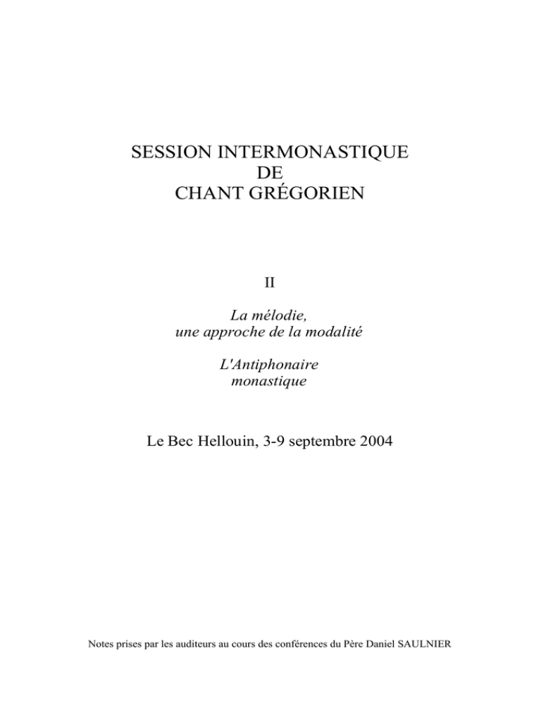 SESSION INTERMONASTIQUE DE CHANT GRÉGORIEN