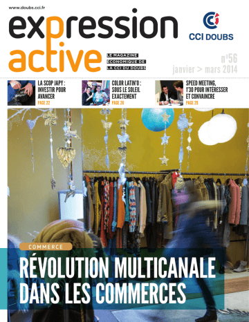www.doubs.cci.fr no56 LE MAGAZINE ÉCONOMIQUE DE LA CCI DU DOUBS LA SCOP JAPY : INVESTIR POUR AVANCER PAGE 22 COLOR LATIN'O : SOUS LE SOLEIL EXACTEMENT PAGE 26 janvier > mars 2014 SPEED MEETING, 1'30 POUR INTÉRESSER ET CONVAINCRE PAGE 29 COMMERCE RÉVOLUTION MULTICANALE DANS LES COMMERCES PAR DOMINIQUE ROY PRÉSIDENT DE LA CCI DU DOUBS 2 sommaire Rendre service 014 qui commence est d’abord pour moi l’occasion de vous adresser tous mes vœux, sincères, de réussite professionnelle et personnelle. Plus largement, je souhaite que notre territoire et les entreprises qui le font vivre voient leur développement se conforter et s’accélérer dans les mois à venir. Les entreprises sont le socle du dynamisme économique et il est plus que jamais nécessaire de tout mettre en œuvre pour favoriser leur essor. La fiscalité qui pèse sur elles demeure certes une préoccupation mais j’ai toute confiance dans les capacités des dirigeants que je côtoie chaque jour. En choisissant de mettre à l’honneur le commerce dans le premier dossier de l’année, j’ai voulu mettre un coup de projecteur sur un secteur d’activité divers dans sa composition mais homogène dans sa volonté farouche de toujours trouver des recettes pour évoluer. Qu’il s’agisse de se lancer dans le digital, la dématérialisation pour séduire les webconsommateurs de plus en plus nombreux, de conquérir une nouvelle clientèle, de diversifier ses services, de miser sur la qualité, l’accueil… les commerçants font preuve de plus en plus d’initiatives. De son côté, la CCI du Doubs accentue son action à leurs côtés : ateliers de sensibilisation gratuits, accompagnement dans le regroupement de leurs forces avec les unions commerciales, information sur le positionnement à adopter sur Internet… Pour toutes ces raisons, tout comme 2013 avait été l’année de l’Industrie pour le réseau national consulaire, j’ai décidé de faire de 2014 l’année du Commerce pour la CCI du Doubs. Cela signifiera que les actions qui sont destinées aux 6 000 ressortissants de ce secteur seront accentuées et encore mieux valorisées. La nouvelle année commence et avec elle 12 mois de travail et de défis à relever avec comme fil conducteur pour la CCI, ses élus et ses collaborateurs : rendre le meilleur service aux entreprises encore et toujours. page 04 conjoncture L'économie locale résiste page 06 made in Doubs… et alentours. page 9 le dossier Révolution multicanale dans les commerces page 17 cci en actions page 22 échos de l'éco. Scop Japy : investir pour avancer. Color Latin'o : sous le soleil exactement ! 1'30 pour intéresser et convaincre page 32 info'pratique. page 34 vu/lu. Journal de la Chambre de Commerce et d’Industrie du Doubs, 46 av. Villarceau, 25042 Besançon cedex, Tél. 03 81 25 25 25 Contact : [email protected] - Directeur de la publication : Dominique Roy, président de la CCI du Doubs - Rédacteur en chef : Sylvie Dejour-Albahary - Chef de projet : Corinne Nevière - Ont collaboré à ce numéro : Pierre Accard, Christophe Bordet, Monique Clémens, NF2 (Agence de Presse), Blandine Sauter - Photographies : Laurent Cheviet, DER, Denis Maraux - Maquette : Magazine - Mise en page : Cécile Blary, CCI du Doubs - Abonnement : 25 euros par an. Publicité : MCC, tél. 03 81 55 44 44. www.doubs. cci.fr - Dépôt légal : 2e trimestre 2005. ISSN : 1637-9454. Imprimerie Simon GRAPHIC. E XPRESSION AC TIVE → NUMÉRO 56 | JAN V IER-FÉ V RIER-MAR S 2014 3 conjoncture éco Cette analyse est produite par le Département « études économiques et territoriales » de la CCI du Doubs au 10 décembre 2013 L'économie locale résiste 2e semestre 2013 Le Grand Besançon (CAGB+) : Besançon, capitale horlogère 1er semestre 2014 • Le concours international de chronométrie, les journées internationales du Marketing Horloger, consacrées au SAV, ont mis Besançon sous les projecteurs internationaux de l’horlogerie. De bon augure… 2e semestre 2013 • La mutation de l’offre commerciale se poursuit L’activité du centre-ville est en repli, non seulement en raison de la crise mais surtout de façon plus structurelle, au profit des périphéries. Deux projets peuvent contribuer à inverser cette tendance : - Le tramway, en facilitant l’accès des populations au centre-ville - Le passage Pasteur, centre commercial de cœur de ville 1er semestre 2014 Haut-Doubs : la fin du droit d’option mobilise 2e semestre 2013 • Les manifestations de frontaliers se multiplient pour rappeler l’impact majeur de la fin du droit d’option qui affectera le pouvoir d’achat des frontaliers et donc la prospérité économique de la zone (commerce, immobilier, bâtiment…) dès le deuxième semestre 2014. 1er semestre 2014 • La mise en service des canons à neige sur Métabief permet d’envisager une saison complète, sans subir les aléas climatiques. La question de l’accueil des touristes se pose compte-tenu de la diminution continue de l’offre hôtelière sur le Haut-Doubs depuis 10 ans, avec près de 50 % des hôtels qui ont disparu. croissance 4 emploi industrie agro-alimentaire luxe automobile 2e semestre 2013 1er semestre 2014 commerce travaux publics bâtiment E XPRESSION AC TIVE → NUMÉRO 56 | JANVIER-FÉ VRIER-MAR S 2014 2e semestre 2013 L’agglomération de Montbéliard : une décennie brutale pour l’industrie automobile 1er semestre 2014 • Sochaux conforté La restructuration de la filière automobile est loin d’être achevée. L’internationalisation des outils de production et la rationalisation des sites en Europe se poursuivent. Dans ce contexte, la confirmation du rôle clé du site de Sochaux est une très bonne nouvelle. • Commerce : un marché globalement en baisse Quatre français sur dix anticipent une baisse de leur pouvoir d’achat en 2014. Localement, le bassin de Montbéliard est le plus touché par la récession. 2e semestre 2013 1er semestre 2014 2e semestre