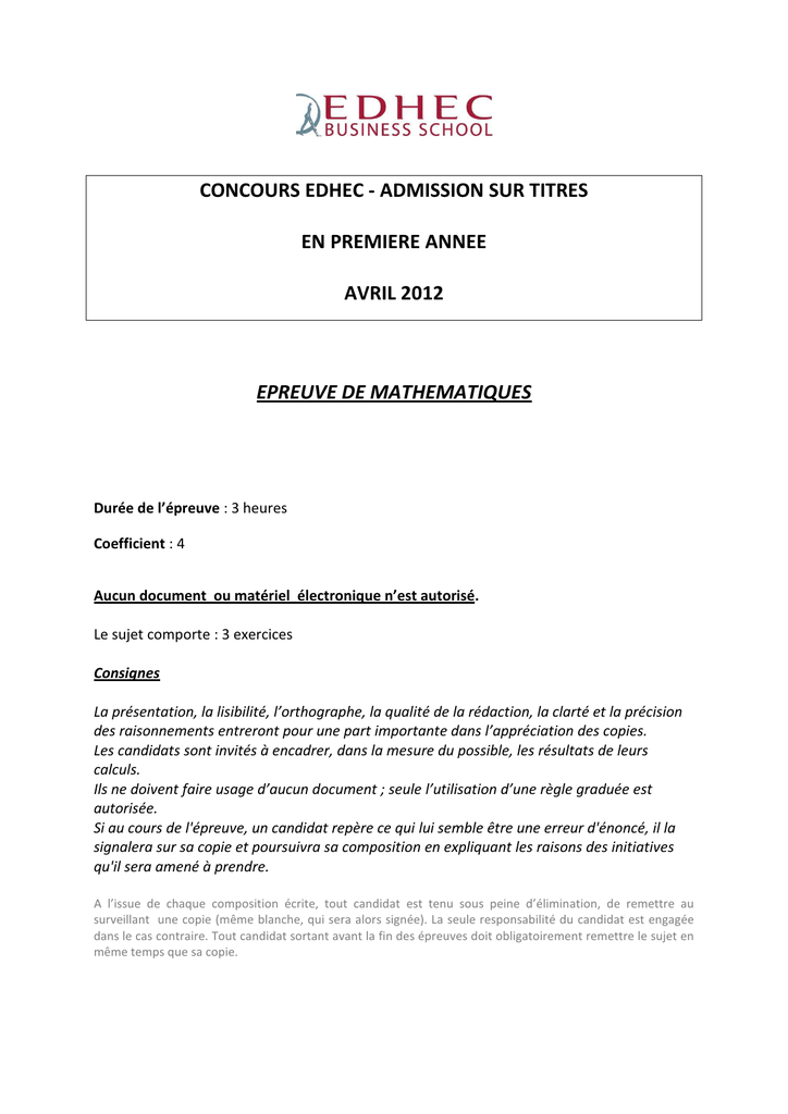 CONCOURS EDHEC - ADMISSION SUR TITRES