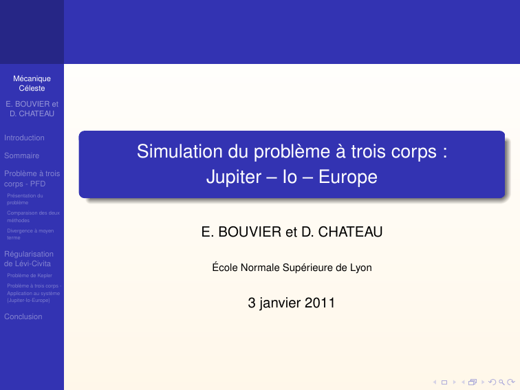 Simulation du problème à trois corps : Jupiter – Io - Zone