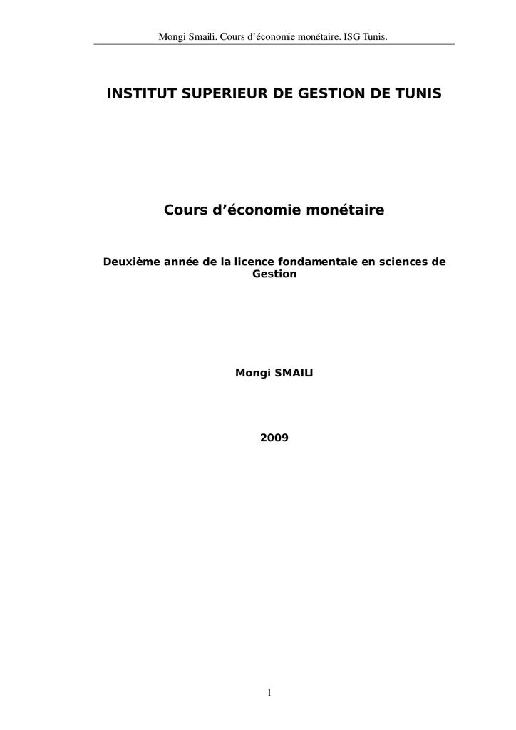 Economie monétaire - Institut Supérieur de Gestion de Tunis