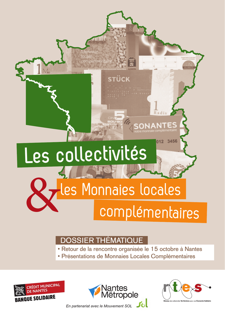 Les collectivités & les Monnaies locales complémentaires DOSSIER THÉMATIQUE • Retour de la rencontre organisée le 15 octobre à Nantes • Présentations de Monnaies Locales Complémentaires En partenariat avec le Mouvement SOL CMJN LOGOTYPE 2015 Orange Métropole 52 % Magenta 100 % Jaune Bleu Métropole 90 % Cyan 40 % Magenta Noir Métropole 100 % Noir Le logotype Nantes Métropole est une entité immuable, dont les transformations envisageables sont définies dans la charte graphique. Toutes autres interprétations graphiques de l’identité visuelle sont interdites. Pour tout complément d’information, contactez le Service Communication externe de Nantes Métropole. & les Monnaies locales Les collectivités complémentaires Jeudi 15 octobre 2015 Nantes Programme 14h15 ifférents types de monnaies locales D complémentaires : enjeux pour les territoires, place des citoyens et des acteurs économiques Animateur de la journée : Clement Lesort, journaliste 10h Accueil café • Marion Ducasse / La Monnaie Autrement (Chambéry), • Dante Edme-Sanjurjo / Eusko (Pays Basque), • Catherine Esnée / Retz’L (Pays de Retz), • Hugo Wanner, e-portemonnee (Province du Limbourg - Belgique). Ouverture des travaux 10h30 • Johanna Rolland, présidente de Nantes Métropole, • Jacques Stern, directeur du Crédit Municipal de Nantes, • Christiane Bouchart, présidente du RTES. 11h Échanges avec les participants Présentation de SoNantes 15h30 par Frédéric Perrin et Marie-Thérèse Panheleux. 2ème table ronde Comment une collectivité locale peutelle impulser une monnaie locale complémentaire ? Monnaies locales complémentaires, enjeux et défis pour les collectivités locales 11h30 • Mireille Hingrez-Cereda, première vice-présidente de la communauté d’agglomération du Boulonnais, • André Sobczak, membre du conseil métropolitain de Nantes Métropole, conseiller municipal de la ville de Nantes, • Alain Boeswillwald, directeur général, SEMITAN, • Anne Le Tellier, chargée de mission ESS, conseil départemental d’Ille-et-Vilaine, • Darren Hollick, coordinateur programme européen “Les enseignements du programme européen Community Currencies In Action”, • Jean-Philippe Magnen, coauteur du rapport interministériel “D’autres monnaies pour une nouvelle prospérité”. Échanges avec les participants Échanges avec les participants 12h30-14h 1ère table ronde 17h Déjeuner (prévu sur place) Clôture • Pascal Bolo, vice-président de Nantes Métropole, premier adjoint ville de Nantes, président de l’association “La SoNantaise” Grand témoin de la journée : Patrick Viveret, philosophe et essayiste, ancien conseiller référendaire à la Cour des Comptes En partenariat avec le Mouvement SOL CMJN LOGOTYPE 2015 Orange Métropole 52 % Magenta 100 % Jaune Bleu Métropole 90 % Cyan 40 % Magenta Noir Métropole 100 % Noir Le logotype Nantes Métropole est une entité immuable, dont les transformations envisageables sont définies dans la charte graphique. Toutes autres interprétations graphiques de l’identité visuelle sont interdites. Pour tout complément d’information, contactez le Service Communication externe de Nantes Métropole. & les Monnaies locales Les collectivités complémentaires Jeudi 15 octobre 2015 10h30 Nantes O uverture des travaux • Pascal Bolo, premier adjoint au Maire en charge des finances, ville de Nantes, président de SONANTES “Johanna Rolland, présidente de Nantes Métropole qui devait ouvrir cette journée, n’a pu être présente, retenue à Bruxelles pour clôturer la cérémonie politique de lancement d’une nouvelle « Convention des Maires ». Dans ce lieu créé par Les Ecossolies, association d’acteurs de l’ESS, avoir une telle journée sur les monnaies locales, en plein essor, pour échanger sur les expériences et pratiques de chacun est important. Sur un socle commun qui a beaucoup été forgé par Patrick Viveret, les monnaies locales complémentaires ont des caractéristiques particulières forgées par les modes de création et les territoires. Mais elles sont toutes un vecteur d’une réflexion sur l’acte d’achat et la capacité à booster l’économie avec la priorite du développement de l’emploi.” • Jacques Stern, directeur du Crédit municipal de Nantes “La première volonté d’une monnaie locale complémentaire est inscrite dans l’agenda 21 entre 2004 et 2006, mais n’apparaissait pas comme un objectif prioritaire. En 2008, la crise mondiale fait revenir la question de la monnaie en première ligne. En 2010, des déplacements d’élus s’organisent pour s’acculturer sur la question des monnaies complémentaires (une journée pour découvrir le WIR a été par exemple organisée avec les décideurs). Un axe apparait suite à la crise de liquidité bancaire : s’appuyer sur les principales forces, chambres consulaires et les CRESS. À partir de l’automne 2012, des ateliers participatifs avec un panel de représentants de la société civile sont organisés autour de deux axes : échanges économiques entre citoyens et entre entreprises. Le projet se confronte aux exigences de la banque de France et à l’ACPR, qui après avoir changé d’avis plusieurs fois, mais sans noter d’opposition au projet, donnent autorisation à l’automne 2014. Les délibérations des collectivités et du crédit municipal suivent et la SoNantes est lancée le 28 avril 2015.” “Nous avons essuyé un certain nombre de plâtres mais le lancement de cette monnaie locale, associé à l’article 16 de la loi de juillet 2014 et au dialogue, a fait bouger les institutions nationales. Nous avons construit un écosystème propice à son développement, composé des chambres consulaires, de la CRESS, de collectivités, du Crédit municipal, de SONAO (voir page 4)... L’association la SoNantaise regroupe en son sein 4 collèges, qui sont la continuité des ateliers participatifs (collège d