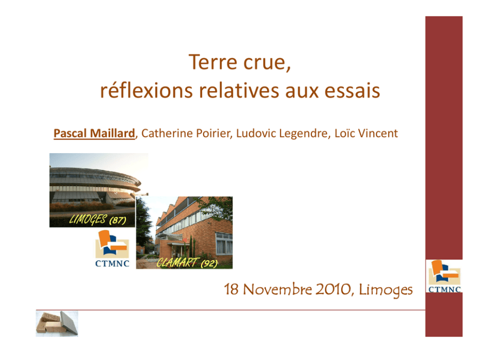 Terre crue, réflexions relatives aux essais
