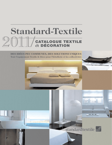 Standard-Textile 2011/ CATALOGUE TEXTILE ± DÉCORATION DES IDÉES PEU COMMUNES, DES SOLUTIONS UNIQUES Tout l’équipement Textile & Déco pour l’hôtellerie et les collectivités 1/52 Sommaire EDITO François Roblin Directeur Général France J’ai une fois de plus l’immense plaisir de vous présenter la nouvelle édition de notre catalogue, et ainsi de vous faire partager la passion qui m’anime depuis quelques années à diriger cette entreprise. Cette passion, je la vis au quotidien avec les femmes et les hommes qui mettent tous les jours leurs compétences et leur énergie à votre service. La création d'un nouveau catalogue c’est comme l’écriture d’une nouvelle histoire, exposant au fil des pages la problématique forte de vous convaincre… de la douceur du linge éponge,… du confort du linge de lit,… de la qualité de nos tissus d’ameublement. Un moment d’intimité entre vous et nous, offrant la possibilité de vous faire découvrir cet engouement qui nous motive depuis de nombreuses années. Depuis quelques mois, vous êtes informés des phénomènes qui perturbent la planète textile. De nombreux facteurs économiques et météorologiques ont fortement contribué à perturber les équilibres mondiaux de la production de coton. Cette situation influe directement sur les marchés de nos matières premières ayant des répercussions économiques importantes. Plus que jamais, la parfaite maîtrise de nos approvisionnements est devenue une priorité. Le groupe Standard Textile, verticalement intégré, propriétaire de nombreuses implantations industrielles dans le monde, s’efforce de continuer à vous livrer les meilleurs produits, répondant à vos besoins dans les délais demandés. Ces nouveaux défis économiques ont obligé le département «Recherche et Développement » de Standard Textile à redoubler d’efforts pour limiter les impacts tarifaires dans votre quotidien. Les marchés sont incertains. Des tarifications adaptées à vos besoins, des nouveaux concepts innovants, ainsi qu’une amélioration constante de notre service sont les garants de votre fidélité. 2/52 EDITO Des idées peu Communes, des solutions Uniques 2 SOMMAIRE 3 P1/ UNIVERS DÉCO 4 01/ CRÉATION CONCEPTION ÉDITION TEXTILE Vous êtes Architecte Décorateur, Investisseur, Agenceur, composons ensemble 6 02/ COLLECTION CHARME Une ambiance cosy 7 03/ COLLECTION TILDOU La douceur microfibre 8 04/ COLLECTION LES INTEMPORELS L'élégance essentielle 10 05/ COLLECTION NEW Toiles imprimées dans l’air du temps 12 06/ COORDONNEZ & COLOREZ Des ambiances dans un style épuré 14 07/ FENÊTRE OUVERTE sur différents accessoires 16 08/ NAPPAGES Habillez vos tables 18 P2/ UNIVERS TEXTILE 20 09/ LE LINGE ÉPONGE Un bain de douceur 22 10/ LE LINGE DE LIT Le savoir faire des tisseurs 32 11/ LES OREILLERS Créateurs de rêves 40 12/ LES COUVERTURES Pour des nuits douillettes 41 13/ LES COUETTES Faites de doux rêves 42 14/ LES PROTECTIONS DE LITERIE Des protections de literie efficaces 44 15/ MATELAS & SOMMIER Le Palais des Rêves 46 16/ GAMME INTISSES Solution economique et pratique 49 17/ LE LINGE D'OFFICE Des fibres naturelles à votre service 50 18/ CONDITIONS DE VENTE 51 Photos non contractuelles. Tarifs susceptibles de modifications. Pour ceux qui ont eu la chance de découvrir en avant première au Salon « Equip Hôtel » nos nombreuses innovations ainsi qu’un univers de tissus d’ameublement entièrement renouvelé, vous ne serez pas dépaysés par la place faite aux différentes ambiances : mer, montagne,… Pour vous, nos clients fidèles, nous vous avons réservé un bouquet de nouveautés et de prouesses technologiques en tout genre. Vous découvrirez le concept « Elévation» vous permettant, tout en conservant une parfaite maîtrise des coûts, d’apporter confort, robustesse et esthétisme. Vous voyagerez avec Le concept Yin Yang… Qui n’a pas souhaité, un jour, sortir de la douche et associer la sensation d’un essuyage vigoureux à une caresse textile délicatement posée sur la peau ?… Vous l’avez rêvé ? Standard Textile l’a inventé… L’essayer ? Ce sera l’adopter ! Dans cette présentation, l’environnement n’est pas oublié, en dehors de la gamme de produits Centium que nous élargissons, nous sommes heureux de vous annoncer la mise en collection d’articles de linge éponge en fibre de coton 100 % naturelle et prêtes a l’emploi. Sans traitement de blanchiment en tout genre et dénué d’azurants optiques difficilement biodégradables, ces éponges bénéficient d’une longévité considérablement augmentée, tout en respectant la nature. Mieux qu’un grand discours, nous espérons que vous ressentirez autant de plaisir à découvrir ces quelques pages que nous en avons eu à les réaliser. Notre importante équipe de commerciaux sédentaires, assistée des commerciaux de terrain, se tient à votre disposition pour vous assister dans la découverte de ce catalogue 2011. Laissons place, maintenant, à la découverte… 3/52 Univers Déco P1/ COLLECTION 2011 EDITEUR, CONFECTIONNEUR, NOUS PROPOSONS AUX PROFESSIONNELS UNE GAMME DE PRODUITS CONTEMPORAINS ET DE STYLE. PARCE QUE VOTRE PROJET EST UNIQUE, NOTRE EXPÉRIENCE, NOTRE SERVICE ET NOTRE QUALITÉ LE SONT AUSSI. VOTRE IMAGINATION, NOTRE SAVOIR FAIRE, NOUS PERMETTENT DE CRÉER ENSEMBLE L’UNIVERS QUI VOUS RESSEMBLE. DU CONSEIL JUSQU’À L’INSTALLATION DE VOTRE PROJET, NOTRE ÉQUIPE PROFESSIONNELLE RESTE À VOS CÔTÉS. MOUNTAIN 4/52 SEA GARDEN CITY ➜ DÉPLACEMENT SUR SITE DE NOS 4 RESPONSABLES RÉGIONAUX SPÉCIALISÉS ➜ SHOW-ROOM AVEC + DE 7000 RÉFÉRENCES ➜ BUREAU DE STYLE ➜ EQUIPE DE TECHNICIENS POSEURS ➜ SERVICE APRÈS VENTE ➜ BOUTIQUE EN LIGNE : www.standard-textile.fr 5/52 Création Conception Édition Textile#OMPOSONSENSEMBLE Collection Charme Une ambiance cosy Univers Déco Univers Déco COLLECTION 2011 COLLECTION 2011 Création Conception Édition Textile 01/ VOUS