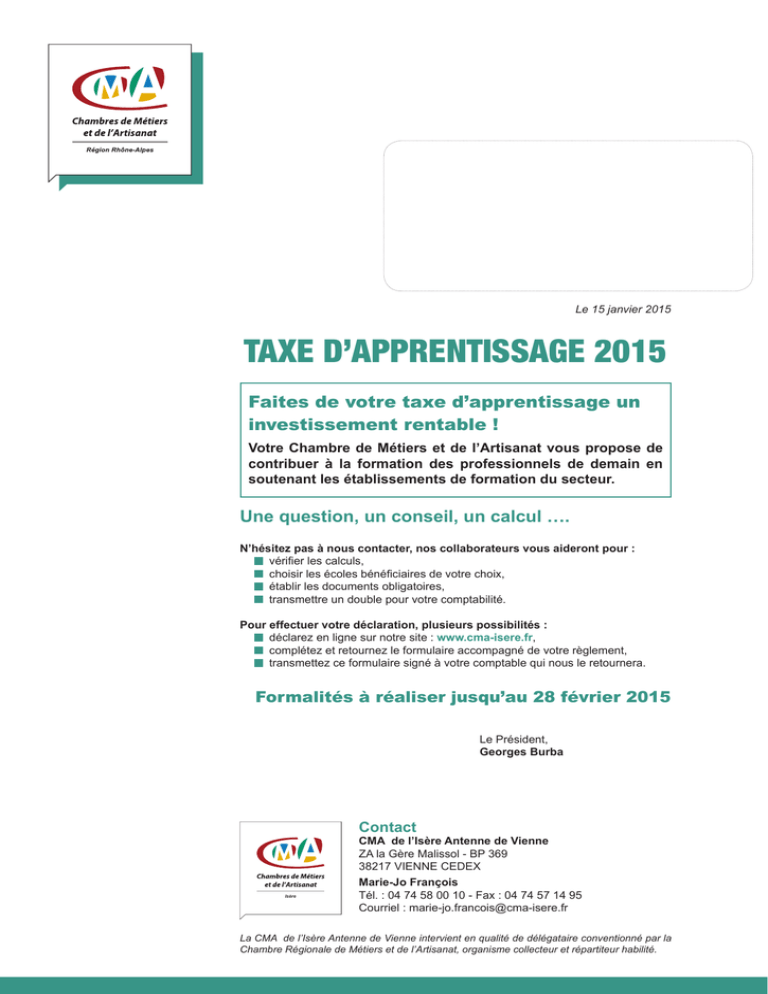 taxe d`apprentissage 2015 - Chambre de Métiers et de l`Artisanat de