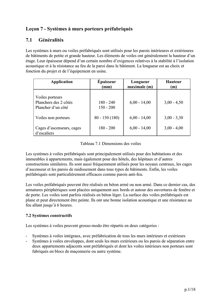 Leçon 7 - Systèmes à murs porteurs préfabriqués 7.1 Généralités