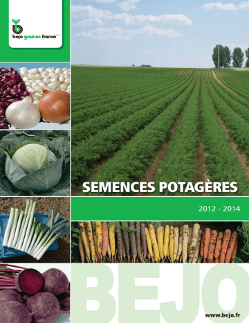 SEMENCES POTAGÈRES 2012 - 2014 www.bejo.fr Journées portes ouvertes Bejo …découvrez notre gamme …visitez nos champs d’essais pour légumes conventionnels et biologiques …apprenez-en davantage sur nos variétés et leur capital génétique unique …découvrez les dernières avancées …découvrez de nouvelles technologies …informez-vous sur les possibilités qu’offrent les nouvelles variétés …discutez des tendances en matière de production et de marketing …participez à notre visite présentant le nettoyage, la manutention et le traitement des semences …apprenez-en davantage sur notre travail de recherche novateur …visitez la vaste exposition de machines Le site des portes ouvertes se situe en face de notre siège de Warmenhuizen, Pays-Bas. Du 27 septembre au 1er octobre 2011 Du 25 septembre au 29 septembre 2012 Du 24 septembre au 28 septembre 2013 Sommaire 2 Equipe commerciale et technique 8 Carottes 3 Les services Bejo Céleris 26 Cornichon Asperges et radis 28 36 Coriandre et persils Epinards Echalotes de semis 12 26 29 4/5 Types et qualité de produits / Programme Bio Chicorées Fenouils 27 30 Oignons et bulbilles d’oignons 37 Jeunes pousses 13 37 Mâches Betteraves 6 16 Choux 27 Navet et Rutabaga Poireaux 34 38/40 Conditions générales de vente « Beauchêne » - 49250 Beaufort en Vallée Tél. 02 41 57 24 58 - Fax 02 41 57 24 05 www.bejo.fr - [email protected] 1 L’équipe commerciale et technique 62 59 80 76 Maxime VIEL [email protected] Port. 06 81 46 44 43 29 Éric GOSSART [email protected] Port. 06 81 46 51 61 Jean-Pierre ISSARTIER [email protected] Port. 06 81 46 33 34 Adrien GUYARD [email protected] Port. 06 81 46 46 45 Franck ALEGRI [email protected] Port. 06 81 46 46 98 Jean-Michel DROUET Responsable des ventes [email protected] Port. 06 89 14 47 57 2 95 78 61 44 92 55 51 93 75 94 91 91 28 53 56 01 - Ain 02 - Aisne 03 - Allier 04 - Alpes de HteProvence 05 - Alpes (Hautes-) 06 - Alpes Maritimes 07 - Ardèche 08 - Ardennes 09 - Ariège 10 - Aube 11 - Aude 12 - Aveyron 13 - Bouches-du-Rhône 14 - Calvados 15 - Cantal 16 - Charente 17 - Charente-Maritime 18 - Cher 19 - Corrèze 2A - Corse-du-Sud 2B - Corse (Haute-) 21 - Côte-d’Or 22 - Côtes-d’Armor 23 - Creuse 24 - Dordogne 25 - Doubs 26 - Drôme 27 - Eure 28 - Eure-et-Loir 29 - Finistère 30 - Gard 31 - Garonne (Haute-) 32 - Gers 33 - Gironde 34 - Hérault 35 - Ille-et-Vilaine 36 - Indre 37 - Indre-et-Loire 38 - Isère 39 - Jura 40 - Landes 41 - Loir-et-Cher 42 - Loire 43 - Loire (Haute-) 44 - Loire-Atlantique 45 - Loiret 46 - Lot 47 - Lot-et-Garonne 48 - Lozère 49 - Maine-et-Loire 50 - Manche 51 - Marne 52 - Marne (Haute-) 53 - Mayenne 54 - Meurthe-et-Moselle 55 - Meuse 56 - Morbihan 57 - Moselle 58 - Nièvre 59 - Nord 60 - Oise 61 - Orne 62 - Pas-de-Calais 27 22 35 Jean-Loup LE JOLY [email protected] Port. 06 29 50 37 79 14 08 02 60 50 77 54 10 72 45 68 21 18 79 25 58 36 86 87 16 39 71 03 17 23 01 42 63 15 33 48 30 81 31 64 65 09 34 26 05 84 04 06 13 83 11 66 63 - Puy-de-Dôme 64 - Pyrénées-Atlantiques 65 - Pyrénées (Hautes-) 66 - Pyrénées-Orientales 67 - Rhin (Bas-) 68 - Rhin (Haut-) 69 - Rhône 70 - Saône (Haute-) 71 - Saône-et-Loire 72 - Sarthe 73 - Savoie 74 - Savoie (Haute-) 75 - Paris (ville de) 76 - Seine-Maritime 77 - Seine-et-Marne 78 - Yvelines 79 - Sèvres (Deux-) 80 - Somme 81 - Tarn 82 - Tarn-et-Garonne 83 - Var 84 - Vaucluse 85 - Vendée 86 - Vienne 87 - Vienne (Haute-) 88 - Vosges 89 - Yonne 90 - Belfort (Territoire de) 91 - Essonne 92 - Hauts-de-Seine 93 - Seine-Saint-Denis 94 - Val-de-Marne 95 - Val-d’Oise 73 12 82 32 38 43 07 46 47 74 69 19 24 40 90 70 37 85 67 88 52 89 41 49 57 2B 2A Service commercial et expéditions Service commercial / Expéditions Lawrence DAUNCEY / Alain EAS Annabelle LEVEQUE / J-Marie MERCIER « Beauchêne » - 49250 Beaufort en Vallée Tél. 02 41 57 24 58 - Fax 02 41 57 24 05 XXXCFKPGStJOGP!CFKPGS www.bejo.fr Madame, Monsieur, Trois années se sont écoulées depuis la parution de notre dernier catalogue de semences potagères conventionnelles. Bejo a mis à profit ce temps pour accroître partout dans le monde l’utilisation des variétés issues de sa recherche et sélection. Une recherche tournée vers vos attentes et celles de vos clients, gagnant chaque année, en qualité et en résultat. A travers les résistances aux maladies ou par l’utilisation de nouvelles techniques de traitements des semences, elle transforme en faits concrets, les lourds investissements engagés pour assurer le haut niveau de qualité de nos produits et leur adaptation à un environnement en pleine mutation. Nous souhaitons répondre ainsi aux besoins d’optimisation de vos productions pour accroître votre compétitivité dans le respect des contraintes environnementales. w w w. b e j o . f r Au même rythme que Bejo accroît son positionnement dans de nombreuses espèces, nous mettons un point d’honneur à dimensionner nos capacités de production en conséquence pour assurer un approvisionnement optimal et pallier aux contraintes de récoltes. Nous réunissons au sein de l’équipe commerciale, les compétences produits et marchés et les partageons avec vous, au plus près du terrain en étant disponibles au moment du choix variétal mais également pendant toute la conduite de la culture. Cette approche locale est complétée par le réseau tissé par Bejo au niveau mondial, véritable atout pour faciliter les mises en relation entre tous les acteurs de la chaine agroalimentaire. Dans l’attente de nos futurs contacts, nous vous souhaitons une agréable découverte de ce catalogue. Bien cordialement, L’équipe commerciale Ces semences sont destinées à des professionnels. Vérifiez que la variété est adaptée à vos conditions d’exploitation. Nous consulter par écrit en cas de doute. Les informations données dans ce catalogue sont indicatives. Ce catalogue est destiné au marché français. Pour toute demande hors du territoire fran