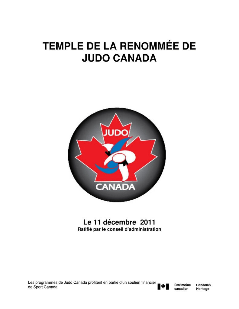 TEMPLE DE LA RENOMMÉE DE JUDO CANADA