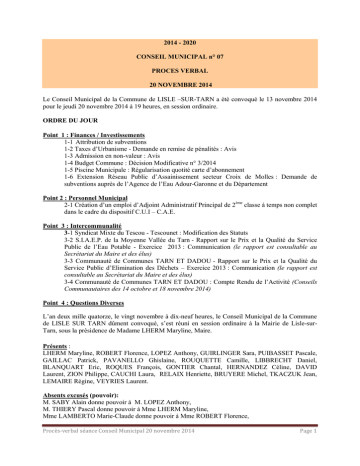 Téléchargez le compte rendu de Conseil municipal - Lisle-sur-Tarn