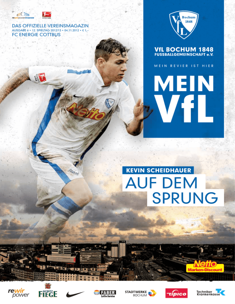 DAS OFFIZIELLE VEREINSMAGAZIN 2.ËÉËVˤԱË.+0ËÔå¤ÔʤÏËVËå|±¤¤±Ôå¤ÔËVËˤ^r Ë!-Ë #002. KEVIN SCHEIDHAUER AUF DEM ËËËËËË.+-2! Glückauf gegen Energie Cottbus [a\ M H O J Z U L K P 4P[3L [LU R U \ 7 U L [ Z KLUUpJO INHALT PORTRAIT KEVIN SCHEIDHAUER Groß, athletisch, sprunggewaltig: Das sind beste Voraussetzungen, um im Basketball zu reüssieren. Kevin Scheidhauer ist aber Fußballer geworden und nun auf dem Sprung ins Profigeschäft. Nachhilfe unterm Korb gibt´s dennoch: von den BasketballDamen des Herner TC. 14 PRESSING FOTIOS PAPADOPULOS VfL BOCHUM 1848 VORSITZENDER DES AUFSICHTSRATS: Hans-Peter Villis Frank Goosen ?ÁÍËÁjjËVË+Áw±ËÁ±Ë?ÖÄ+jÍjÁË.WÙÍÍË ?ÁÍË7¬jÁÄËVËjÁaË8jÁÍ EHRENVORSITZENDER DES AUFSICHTSRATS]Ë8jÁjÁËÍj~jÁ VORSTAND]ËÄ~?ÁË.WÝjjËVËjÄË0aÍ PRESSEABTEILUNG]Ë ÁÄÍ?Ë.W ?ÄËVËjÄËÁWj ?ÁWË?ÍËVËWË.?ÖjÁ ÖFFENTLICHKEITSARBEIT/TEAMBETREUUNG: Yvonne Oleszak ÖFFENTLICHKEITSARBEIT/FANBEAUFTRAGTER: Dirk Michalowski STELLV. VORS. DES AUFSICHTSRATS: AUFSICHTSRAT]Ë TRAINER: Karsten Neitzel Thomas Reis TORWARTTRAINER: Peter Greiber FITNESS- UND REHA-TRAINER: Stefan Bienioßek VEREINSARZT: Priv.-Doz. Dr. Karl-Heinz Bauer PHYSIOTHERAPEUTEN]ËÙÁ~jËÄËVË.?ÄW?Ë=Ü?ÜWËVËÁ?Ë= jÁ ZEUGWARTE]ËaÁj?ÄË+?ËVËjjaÍËÁjj?ÖÄË CO-TRAINER: VEREINSFARBEN]Ë?Ö8j MITGLIEDER: 4.512 ! 82 .02! LEITER NACHWUCHSABTEILUNG: Alexander Richter Timo Saviano Iraklis Metaxas TRAINER VfL BOCHUM 1848 U23: Iraklis Metaxas TRAINER VfL BOCHUM 1848 U19]Ë?ÁÖÄãË8Äã TRAINER VfL BOCHUM 1848 U17: Christian Britscho GESCHÄFTSFÜHRER: „Genauso schnell wie er da war, war er auch schon wieder weg!“ Das sagte Christa Ternow, seit über 40 Jahren die gute Seele des VfL, einst über Fotios Papadopulos. Nun ist er wieder aufgetaucht und erzählt, wie es ihm, dem ersten Ausländer in Bochums Bundesligageschichte, seit 1974 ergangen ist. 41 4 ZOOM 6 MOMENTAUFNAHME // Auswärts in Aue 8 KURZPASS // Aktuelles rund um den VfL Bochum 1848 14 PORTRAIT // Kevin Scheidhauer 20 UNSER SCHMUCKKÄSTCHEN // Ticketing 22 FORMSACHE // Verständnis für Fan-Frust 24 DER KADER // Unsere Mannschaft 26 DATENBANK // Statistiken zum VfL Bochum 1848 und zur 2. Bundesliga 28 SPIELPLAN // Die 2. Bundesliga-Saison 2012/13 30 POSTER // Lukas Sinkiewicz 33 UNSER GEGNER // FC Energie Cottbus 37 NÄCHSTE AUSFAHRT // FC St. Pauli 38 DAS GROSSE VfL-QUIZ // Thema: Der VfL und Energie Cottbus 41 PRESSING // Fotios Papadopulos 46 TALENTSCHUPPEN // VfL Bochum 1848 U23 und Junioren 52 OSTKURVE // Von und für VfL-Fans 58 FAUXPASS CHEFTRAINER NACHWUCHS: TICKETSERVICE/FANARTIKEL-HOTLINE 01805 - 951848 (14 Cent/Min. aus dem deutschen Festnetz, ggf. abweichende Preise aus dem Mobilfunknetz) IMPRESSUM HERAUSGEBER: VfL Bochum 1848 Fußballgemeinschaft e. V. ?ÄÍÁ¬jÁË.ÍÁ?jˤ|yËVË||ȤËWÖ 0j±]ËåÔÏ|ËËy¤o|oËVË?Þ]ËåÔÏ|ËËy¤oy ANSCHRIFT DER REDAKTION: VfL Bochum 1848 Fußballgemeinschaft e. V. Redaktion MEIN VfL ?ÄÍÁ¬jÁË.ÍÁ?jˤ|yËVË||ȤËWÖ redaktion@vfl-bochum.de CHEFREDAKTION]Ë ÁÄÍ?Ë.W ?ÄË®7.a+¯ËVËjÄËÁWj REDAKTION]Ëj?ÁÍËÍÄWjÁËVË ?ÁWË?ÍËVË ÁÄÍ¬Ë jßjÁ VË-j~?Ë ÙjÁËVË ÁÄÍ?Ë+ãËßË0??ß VËWË.?ÖjÁËVË ?ÁË.Í ÁËVË.Íjw?Ë Á~Ë®+Á?Í?ͯ LAYOUT: Jan Scheibeck SATZ UND GESAMTHERSTELLUNG: Blömeke Druck SRS GmbH -jÄÄjÁË.ÍÁ?jËyËVË||ÉyÏËjÁjËVË0j±]ËåÔÏÔyËËÔÈå FOTOS]Ë7wËWÖˤo|oËVËxÁËĬÁͬÍ^ËjÄjÁWj WÍMW^ËWÖËVË8w~?~ËjWËVË.Í?aÍËWÖ^ +ÁjÄÄjËÖaËwÁ?ÍÄ?ÍËVË-ÖÁ!?WÁWÍj Der Bezugspreis ist im Mitgliedsbeitrag enthalten. Es gelten die Anzeigenpreise für die Saison 2012/13 Erscheinungsweise: zwei Mal monatlich MEIN VfL // 3 // ZOOM AUF DEM SPRUNG Kevin Scheidhauer bringt alles mit, um im Basketball erfolgreich zu sein: er ist groß, athletisch und sprunggewaltig. Dennoch entschied er sich für Fußball. Nicht die ÄWjWÍjÄÍjË 8?^Ë ajË ÄË ÝÖÁajË jÁË 2¤ÈÖÁ¬?jÄÍjÁË ÖaË jÖÍÄWjÁË jÄÍjÁË ÍË der U19. Nun ist er beim VfL Bochum 1848 auf dem Sprung ins Profigeschäft. Zur Abwechslung bekommt er Gratis-Lehrstunden unterm Korb, und zwar nicht von irgendwem, sondern von der Bundesligamannschaft der Damen des Herner TC. Das Portrait ab Seite 14. \\ // MOMENTAUFNAHME AUA! ?ÄË8jÍÍjÁ]ËÄWjWͱË?ÄË.¬j]ËWËÄWjWÍjÁ±Ë?ÄËÁ~jMÄ]ËajÄ?ͱËjËjÄÍÁjÄjË ins Erzgebirge war unter diesen Gesichtspunkten schon schlimm genug. Dass Kapitän Andreas Luthe beim dritten von sechs Gegentoren auch noch schwer verletzt wurde, rundete den gebrauchten Tag dann ab. Dem Pokalspiel in Havelse (nach Redaktionsschluss) wurde somit eine noch größere Bedeutung beigemessen als ohnehin schon. \\ KURZPASS // NACH AUE-SPIEL BERGMANN NICHT MEHR CHEFTRAINER Der VfL Bochum 1848 hat Andreas Bergmann mit sofort~jÁË8ÁÖ~ËÜËÄjjÁËÖÍË?ÄË jwÍÁ?jÁËjÍMÖden. Das gab die Vereinsführung am Sonntag, 28. Oktober 2012, nach einer Sitzung des Aufsichtsrates und des Vorstands bekannt. Im September 2011 hatte Bergmann die Nachfolge von Cheftrainer Friedhelm Funkel angetreÍj±Ëº8ÁËa?jËaÁj?ÄËjÁ~?ËwÙÁËajËÁMjÍ^ËajËjÁË für den VfL geleistet hat. Er hat damals die Mannschaft auf einem Abstiegsplatz übernommen und zum Klassenerhalt geführt“, so Sportvorstand Jens Todt. Nach sieben Pflichtspielen ohne Sieg und der 1:6-Niederlage beim FC Erzgebirge Aue steht die Mannschaft jedoch erneut auf dem 17. Tabellenplatz. „Die Entscheidung, sich von Bergmann zu trennen, ist das Ergebnis der sportlichen Talfahrt sowie des Dilemmas, dass sich die positiven Ansätze des eingeleiteten personellen Umbruchs in der Tabelle nicht widerspiegeln“, so Jens Todt. Beim DFB-Pokalspiel in Havelse (nach Redaktionsschluss) haben die beiden CoTrainer Karsten Neitzel und Thomas Reis die Mannschaft betreut. \\ // LÄNDERSPIEL TICKETVERKAUF FÜR U21-LÄNDERSPIEL STARTET Für das U21-Länderspiel zwischen Deutschland und der Tü