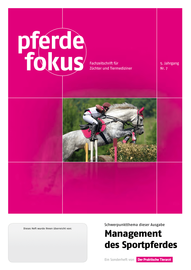 Fachzeitschrift für Züchter und Tiermediziner 5. Jahrgang Nr. 7 Schwerpunktthema dieser Ausgabe Dieses Heft wurde Ihnen überreicht von: Management des Sportpferdes Ein Sonderheft von – ANZEIGE – DIGITALES RÖNTGEN DESIGNED TO BE THE FIRST! DER EXAMION ® DR 1012 LEISTUNGSSTARKE DR LÖSUNG Ö - FÜR ALLROUND AUFNAHMEN AM PFERD Au Kasse ch im ttenf 35 x 4 ormat 3 erhält cm lich! Das kabellose DR System im Format 25 x 30 cm für Ihre digitalen Röntgenaufnahmen am Pferd! Durch seine ultrakompakte und extrem leichte Bauweise ist die Mobilität speziell im Außeneinsatz gesichert. Profitieren auch Sie von brillanten digitalen Röntgenaufnahmen. f f f f f Kein Austausch der vorhandenen Röntgentechnik notwendig otwendig Optimale Bildqualität Bildkontrolle binnen weniger Sekunden Modernste Touchscreen-Funktionalität Weniger Wartezeit Leistungsstark durch die EXAMION® AQS Software In nur wenigen Sekunden wird das Röntgenbild auf dem Bildschirm der Konsole angezeigt und kann im speziell hierfür entwickelten „Pferdemodus“ der EXAMION® AQS Software befundet bzw. bearbeitet werden. Darüber hinaus können Röntgenbilder unkompliziert und schnell an einen Drucker, ein PACS oder andere Zielgeräte gesendet werden. Gerne überzeugen wir Sie vor Ort - sprechen Sie uns an! www.examion.de EXAMION® GmbH I Erich-Herion-Str. 37 I 70736 Fellbach I Tel. 0711 12 00 02 - 0 I Fax 0711 12 00 02 - 22 I [email protected] editorial D as Pferd ist vom Nutztier zum Freizeit- und Sportpartner geworden. Diese Entwicklung hat dazu geführt, dass auch die Ansprüche an das Tier sich sehr verändert haben: Im Wettkampf verlangen wir den Pferden je nach Sportart große Kraft, Ausdauer, Konzentration und Geschicklichkeit ab. Wer als Pferdebesitzer, Reiter oder Fahrer hohe Leistungen fordert, muss gleichzeitig den Anforderungen an den Umgang mit Pferden im Sport gerecht werden. Definiert werden diese in den Leitlinien für den Tierschutz im Pferdesport, die vor allem Tierschutzaspekte bei der Ausbildung und im Training beschreiben. Der artgerechte Umgang mit Freizeit- und Sportpferden erfordert ein großes Wissen und Können des Reiters oder Fahrers in allen Belangen des Trainings und bei Wettkämpfen. Pferde haben ein spezifisches Sozial-, Bewegungs- und Fressverhalten. Ihre Bedürfnisse zu berücksichtigen, ist nicht nur aus Tierschutzgründen unverzichtbar, sondern auch zum Erreichen von Höchstleistungen notwendig. In dieser Ausgabe des pferdefokus widmen wir uns als Schriftleitung, unterstützt von zahlreichen Fachleuten, vor allem der Diagnostik und Therapie leistungsmindernder Probleme bei sportlich genutzten Pferden – das Spektrum reicht von typischen Erkrankungen über die Kontrolle unerwünschten Sexualverhaltens bis zum Überprüfen des Sattels. Darüber hinaus gibt das vorliegende Heft zahlreiche Denkanstöße zum tiergerechten Ausbilden und Füttern von Sportpferden. Dr. med. vet. Katja Roscher, Dipl. ECEIM PD Dr. med. vet. Ingrid Vervuert Management des Sportpferdes Hohe Leistungen bringen Pferde nur, wenn sie gesund und gut ausgebildet sind. Das richtige Futter, eine tiergerechte Haltung und die passende Ausrüstung sichern eine gute Startposition. Wir freuen uns, wenn das zusammengestellte Wissen sowohl Pferdebesitzer als auch Pferdetierärzte im Umgang mit dem Sportpartner Pferd unterstützt und zahlreiche Gespräche rund um das Pferd im Sport anregt. Katja Roscher Ingrid Vervuert pferdefokus – 5. Jahrgang, Nr. 7 3 Fütterung & Haltung 6–35 36–41 6 Lahmgelegt 36 Fit durch gutes Futter Häufige Lahmheitsursachen beim Sportpferd Die Ernährung des Sportpferdes Medizin 16 Ist es das Herz? Kardiale Probleme des Sportpferdes 21 Außer Atem Dynamische Erkrankungen der oberen Atemwege 29 Mehr als ein Muskelkater Muskuläre Probleme des Sportpferdes 4 pferdefokus – 5. Jahrgang, Nr. 7 Pferde, die hohe Leistungen bringen, brauchen viel Energie. Neben ausreichend Raufutter sorgen vor allem Getreide, Eiweiß und Fett für mehr Power. Durch vermehrtes Schwitzen bei enormer körperlicher Belastung kommt es zu Wasser- und Elektrolytverlusten, die sinnvoll ausgeglichen werden müssen. Bei intensiv genutzten Pferden ist eine gut durchdachte Rationsgestaltung deshalb besonders wichtig. inhalt Management des Sportpferdes Zu dieser Ausgabe: Damit Sportpferde im Wettkampf gute Leistungen bringen, muss mehr passen als der Sattel: Gesunde und richtig ausgebildete Tiere geben gerne ihr Bestes. Titelfoto © Mikhail Kondrashov - Fotolia.com ausbildung & Sport Ausbildung Zucht 32 – 36 48–56 42 Hormone unter Kontrolle 48 Passt, wackelt und hat Luft Möglichkeiten zur Kontrolle des Sexualverhaltens bei Stute und Hengst Satteldruckmessung zur objektiven Überprüfung des Systems Reiter-Sattel-Pferd Typisches Dominanzverhalten, eingeschränkte Rittigkeit und reduzierte Leistungsbereitschaft – unerwünschtes Rosse- und Hengstverhalten kann das Training und die erfolgreiche Teilnahme an Wettkämpfen erheblich erschweren. Doch es gibt verschiedene Möglichkeiten, Geschlechtshormone bei Stute und Hengst zu regulieren und so das Verhalten zu beeinflussen. 42–47 53 Pferdegerechtes Reiten & Sport Die Entwicklung des Pferdesports – ein Widerspruch zur klassischen Reitlehre Spektrum 57–62 Doping im Pferdesport Dopingproblematik bei Pferd und Reiter aus juristischer Sicht 63–71 Marktplatz 71 Impressum pferdefokus – 5. Jahrgang, Nr. 7 5 Foto: Melissa Schalke/fotolia.de Medizin Lahmgelegt Häufige Lahmheitsursachen beim Sportpferd Michael Röcken, Joachim Hahn, Tanja Witte W Orthopädische Probleme gehören zu den häufigsten Erkrankungen des Pferdes, die zur Sportuntauglichkeit eines Patienten führen können. Dabei zählen Sehnen- und Gelenkerkrankungen zu den bekanntesten Lahmheit verursachenden Erkrankungen des Bewegungsapparates, die sich vor allem bei Sportpferden unter Belastung manifestieren können. Mehrheitlich ist eine Vordergliedmaße von der Lahmheit betroffen. Dabei sind rund 95 Prozent dieser 