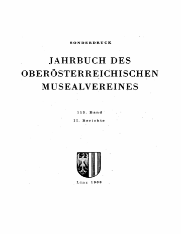 SONDERDRUCK JAHRBUCH DES OBERÖSTERREICHISCHEN MUSEALVEREINES 1 13. B a n d II. Berichte Linz 1968 I N H A L T S V E R Z E I C H N I S Seite 1. Nachrufe Hans Deringer Rudolf Heckl Paul Karnitsch-Einberger Rudolf Löberbauer 2. Jahresberichte ,1967 Oberösterreichischer Musealverein Oberösterreichisches Landesmuseum Direktionsbericht Abteilung Urgeschichte und Baiernzeit Abteilung Römerzeit und Völkerwanderung Gräberfeld-Archäologie in Oberösterreich 1948 bis 1967 Abteilung Kunst- und Kulturgeschichte Graphische Sammlungen Münzen-, Medaillen- und Siegelsammlung Volkskunde-Abteilung Abteilung Technikgeschichte Abteilung Biologie Botanische Arbeitsgemeinschaft Sphagnum Dusenii Jensen — neu für die Flora des Ibmer Moores Hydrobiologische Arbeitsgemeinschaft Entomologische Arbeitsgemeinschaft Abteilung Mineralogie und Geologie Bibliothek Heimathäuser und -museen Heimatverein Bad Goisern Heimatmuseum Bad Ischi Heimathaus Braunau am Inn Stadtmuseum Eferding Musealverein „Lauriacum" Enns Mühlviertier Heimathaus Freistadt Museum der Stadt Gmunden Heimathaus Haslach Heimatmuseum Losenstein Heimatbund „Mondseer Rauchhaus" Heimatverein Obernberg am Inn Innviertler Volkskundehaus und Innviertler Galerie in Ried i. I. Heimathaus Schärding Heimathaus Steyr Heimathäus Vöcklabruck Ortsmuseum Walding 7 9 13 16 18 21 21 23 24 25 32 34 36 38 44 45 60 63 64 65 69 69 71 71 71 72 72 -74 79 80 81 83 83 88 89 90 91 92 95 Seite Museen und Archive der Stadt Wels Dr.-É.-Beninger-Heimatmuseum Bad Wimsbach-Neydharting Verband Oberösterreichischer Freilichtmuseen Die wissenschaftlichen Einrichtungen der Stadt Linz Archiv der Stadt' Linz Museum der Stadt Linz Stadtbibliothek Naturkundliche Station der Stadt Linz Stift St. Florian Denkmalpflege Oberösterreichisches Landesarchiv Institut für Landeskunde von Oberösterreich Oberösterreichisches Heimatwerk Oberösterreichischer Werkbund Privatinstitut für Theoretische Geologie in Linz Technisches Büro für angewandte Geologie in Linz Landwirtschaflich-chemische Bundesversuchsansalt in Linz Botanische Station in Hallstatt Naturschutzbüro Dr. Stoiber 3. Bibliographie zur oberösterreichischen Geschichte 96 97 98 101 101 106 113 119 125 127 141 148 151 152 153 156 159 173 175 177 177 Bibliographie zur oberösterreichischen Geschichte DAS SCHRIFTTUM DES JAHRES 1967 Von Rudolf A l t m ü l l e r und Friedrich F u h r i c h Im vorliegenden Literaturverzeichnis wurde eine möglichst vollständige Zusammenstellung aller im Jahre 1967 erschienenen selbständigen Veröffentlichungen und Zeitschriftenaufsätze angestrebt. Dazu kommen noch einige Nachträge aus dem Jahre 1966. Unberücksichtigt blieben Beiträge in Amtsblättern, Tages- und Wochenzeitungen sowie Landkarten und Pläne. Jährlich wiederkehrende selbständig erscheinende Publikationen, die nur aus Rechenschaftsberichten, Tätigkeitsberichten oder Statistiken von Vereinen, Instituten, Institutionen usw. bestehen und keine Beiträge enthalten, wurden ebenfalls nicht aufgenommen. Sie sollen in einer eigenen „Bibliographie des periodischen Schrifttums von Oberösterreich" Berücksichtigung finden. Auch die volkskundliche Literatur, deren Sammlung Univ.-Doz. Dr. Ernst Burgstaller übernommen hat, wird in einer gesonderten Übersicht erscheinen. Tagungsberichte sind im Ortsteil, Kapitel XVII, unter dem Tagungsort angeführt. Im Personenteil, Kapitel XVI, scheinen nicht nur Persönlichkeiten auf, die in Oberösterreich geboren wurden, sondern auch solche, denen unser Land für einen längeren Lebensabschnitt zur Wahlheimat wurde. Für die Aufnahme von Dissertationen war das Jahr der Promotion entscheidend. Rezensionen konnten nur verzeichnet werden, wenn wichtige Ergänzungen geboten wurden. Die Gliederung des Schrifttums erfolgte systematisch; sie ergab sich aus dem erarbeiteten Material. Jeder Titel wurde nur einmal aufgenommen. Grundsätzlich wurde einer sachlichen Einordnung in den Personen- bzw. Ortsteil der Vorzug gegeben. Es empfiehlt sich deshalb, bei der Literatursuche nach Möglichkeit von personellen oder geographischen Bezügen (Kapitel XVI und XVII) auszugehen. Entsprechende Verweise erleichtern das Auffinden der Literatur, Die Reihung innerhalb der Kapitel I bis XV erfolgte nach dem Alphabet der Verfasser, bei anonymen Titeln nach dem treffendsten Stichwort. Abkürzungen wurden nur soweit verwendet, als die Lesbarkeit nicht beeinträchtigt erschien. SYSTEMATISCHE ÜBERSICHT: I. Allgemeine Bibliographien und Nachschlagewerke II. Archiv-, Bibliotheks- und Musealwesen, Sammlungen .. III. Ur- und Frühgeschichte, Römerzeit, Ausgrabungen, Funde IV. Recht, Verfassung, Verwaltung V. Wirtschaft, Politik, Gesellschaft VI. Verkehr, Fremdenverkehr, Tourismus, Naturschutz, Raumplanung VII. Wehr- und Kriegswesen VIII. Wappen, Münzen, Medaillen IX. Glaube, Religion, Kirche X. Schul- und Bildungswesen XI. Gesundheit, Wohlfahrt, Sport XII. Vereine, Gemeinschaften, Institute, Institutionen XIII. Literatur, Sprache XIV. Bildende Kunst, Kunstgewerbe, Denkmalpflege XV. Musik, Theater, Rundfunk, Presse XVI. Biographien, Ehrungen, Nachrufe XVII. Oberösterreich allgemein, Landesteile, Orte, Burgen, Schlösser, Klöster, Stifte 12 Nr. Nr. 1— 17 18— 99 Nr. 100— 128 Nr. 129— 146 Nr. 147— 243 Nr. Nr. Nr. Nr. Nr. Nr. Nr. Nr. Nr. Nr. Nr. 244— 296 297— 303 304— 310 311— 331 332— 377 378— 413 414— 470 471— 552 553— 650 651— 702 703—1049 Nr. 1050—1251 178 I. A L L G E M E I N E B I B L I O G R A P H I E N UND N A C H S C H L A G E W E R K E 1. Altmüller, Rudolf und Friedrich Fuhrich: Bibliographie zur oberösterreichischen Geschichte. Das Schrifttum des Jahres 1966. (Jb. des OÖ. Musealver. Bd. 112/2. Linz 1967: 201—257.) 2. österreichischer Amtskalender. Zsgest. mit Benutzung amtl. Qellen. Jg. 35. Für das Jahr 1967. — Wien 1967. LX, 119, 848 S., S. 17—128. 4° 3. Deutsche Bibliographie. Zeitschriftenverzeichnis 1953—1957. Bibliographie der in Deutschland erscheinenden 