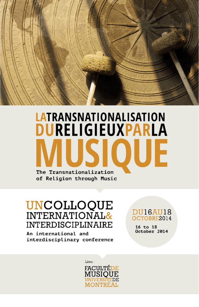 L’OICRM est un groupe de recherche interdisciplinaire, interuniversitaire et international qui travaille sur les thématiques générales de la création et de la recherche en musique. Ce groupe réunit des chercheurs et des étudiants québécois, canadiens et étrangers. OICRM is an interdisciplinary, interuniversity and international research group which aims to foster the development of research in musical creation and music. This group brings together researchers and students from Quebec, Canada and abroad. L'OICRM remercie ses partenaires : 3 Mot de bienvenue Welcome Note Qu’est-ce que la musique peut nous apporter S dans la compréhension des phénomènes de transnationalisation religieuse ? ouvent étudiés d’un point de vue strictement anthropologique ou sociologique, ces phénomènes ont rarement fait l’objet d’une réflexion mettant au centre la dimension musicale et invitant à un dialogue critique entre les mondes académiques anglophone et francophone. Les buts avérés de ce colloque sont de comprendre comment et sous quelle forme la musique « migre » conjointement aux cultes qu’elle accompagne, comment elle contribue à la fabrique de sociétés plurielles et multiculturelles, ainsi que le rôle fondamental qu’elle joue dans l’invention et la réinvention des idées, identités et pratiques religieuses en contexte transnational. Les séances thématiques se dérouleront autour de quatre axes relatifs : 1) à la dimension historique des phénomènes étudiés ; 2) à la manière d’appréhender ces phénomènes (terrain, problématique) suite à l’essor des nouvelles technologies de l’information et de la communication ; 3) à la musique en tant que telle et à l’analyse des processus musicaux lorsque le religieux se transnationalise ; 4) à la façon dont la musique véhicule différents aspects identitaires en contexte de transnationalisation religieuse. Le colloque rassemblera une quarantaine d’intervenants issus de neuf pays (Canada, États-Unis, France, Royaume-Uni, Suisse, Italie, Portugal, Autriche, Australie), ancrés dans des traditions disciplinaires variées (musicologie, ethnomusicologie, anthropologie, sociologie, histoire, sciences religieuses, études internationales et développement). Les présentations couvriront une grande variété de religions et de pratiques religieuses (judaïsme, christianisme, islam, hindouisme, bouddhisme, orisha, Hare Krishna…), ainsi qu’une multitude de terrains et aires géographiques (plus de cinquante pays étudiés, sans compter les « cyber-terrains » et l’étude des phénomènes de circulation religieuse et musicale). L’objectif principal de ce colloque est de favoriser les échanges et les synergies scientifiques, tout en faisant émerger une réflexion pluridisciplinaire sur un problème concret qui concerne de près l’ensemble des sociétés et dont les manifestations sont multiples. Nous tenons à remercier tous les participants d’avoir accepté de relever le défi intellectuel posé par ce colloque. Nous remercions, tout spécialement, les membres du comité de sélection dont les avis experts ont été précieux pour l’élaboration de ce programme. Nos plus sincères remerciements vont à Liouba Bouscant, coordonnatrice générale de l’OICRM, et à Caroline Marcoux-Gendron, coordonnatrice de ce colloque. Merci aussi à l’équipe de la Faculté de musique qui a grandement facilité l’organisation de l’événement. Un merci tout spécial aux musiciens gnawa qui animeront la soirée du jeudi 16 octobre et à Judith Cohen pour le récital-conférence qu'elle donnera le samedi 18 octobre. O What can music bring to the understanding of religious transnationalization? ften studied strictly from an anthropological or sociological perspective, these phenomena have rarely been the subject of a critical reflection that focuses on the musical dimension and that brings the Anglophone and Francophone academic communities together into dialogue. The goals of this conference are to understand how and in what form music “migrates” along with the associated religion, how music contributes to building plural and multicultural societies, and the fundamental role it plays in the invention and reinvention of religious ideas, identities, and practices in a transnational context. The panel themes revolve around four related topics: 1) the historical dimension of the phenomena under consideration; 2) the means of comprehending these issues (through fieldwork and research questions) given the development of new information and communication technologies; 3) the music itself and the analysis of musical developments as religion becomes transnational; 4) the manner by which music conveys different aspects of identity within the context of religious transnationalization. The conference brings together over forty participants from nine different countries (Canada, the United States, France, the United Kingdom, Switzerland, Italy, Portugal, Austria, and Australia), and from various disciplines (musicology, ethnomusicology, anthropology, sociology, history, religious studies, and international and development studies). The presentations encompass an extensive variety of religions and religious practices (Judaism, Christianity, Islam, Hinduism, Buddhism, Orisha, Hare Krishna, etc.), as well as a multitude of fields and geographical areas (more than fifty countries, in addition to “cyber-fields” and the movement of religions and music, are studied). The conference’s primary objective is to foster intellectual exchange and collaboration while at the same time generating a multi-disciplinary discussion of a very real issue that affects every society and that manifests itself in diverse ways. We would like to express our gratitude to all the participants for having taken up the conference’s intellectual challenge. We would especially like to acknowledge the members of the program committee who