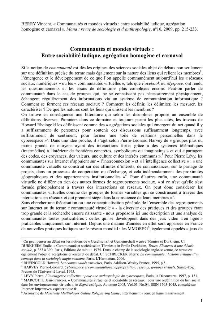 Berry Vincent, “Communautés et mondes virtuels: entre sociabilité