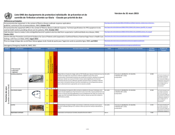 Version du 31 mars 2015 Liste OMS des équipements de protection