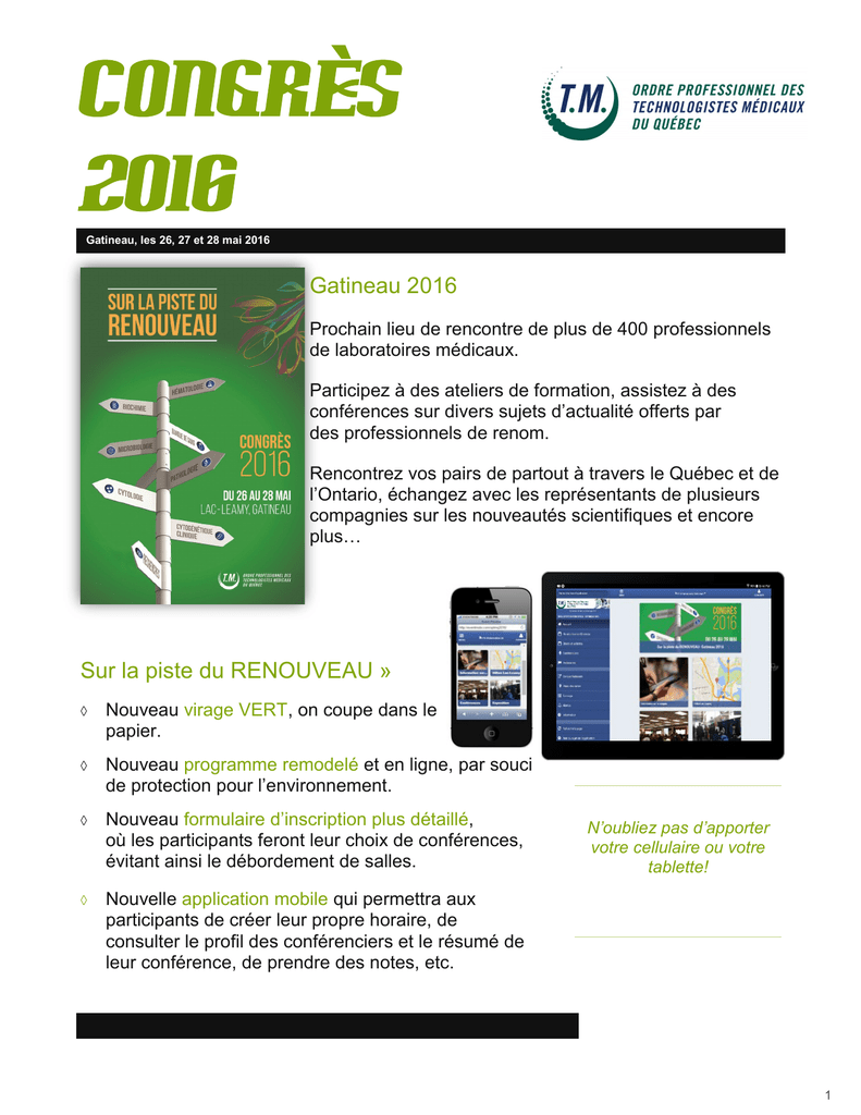 congrès 2016 - Ordre professionnel des technologistes médicaux du