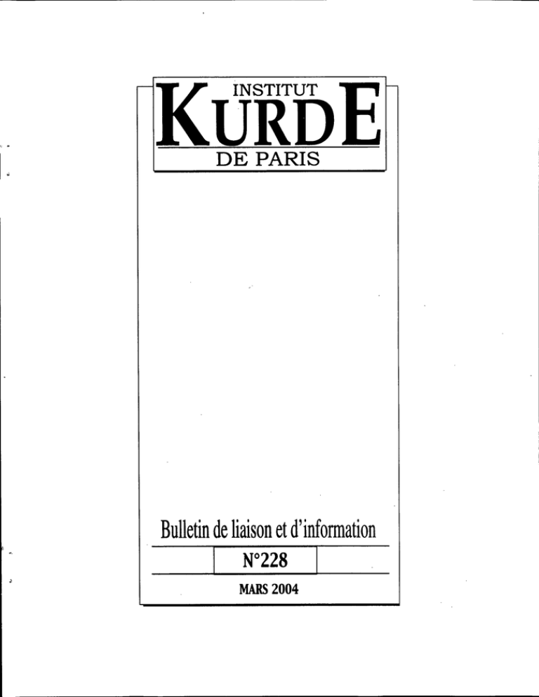'I INSTITUT • URD DE PARIS Bulletin de liaison et d'information I W228 MARS 2004 I ., 4 • l La publication de ce Bulletin bénéficie de subventions du Ministère français des Affaires étrangères (DGCID) et du Fonds d'action et de soutien pour l'intégration et la lutte contre les discriminations (FASILD) Ce bulletin paraît en français et anglais Prix au numéro: France: 6 € - Etranger: 7,5 € Abonnement annuel (12 numéros) France: 60 £ - Etranger: 75 £ Périodique mensuel Dir~cteur de la'pùblication : Mohamad HASSAN Numéro de la Commission Paritaire: 659 13 A.S. ISBN 0761 1285 INSTITUT KURDE, 106, rue La Fayétte': 750l0PARIS Tél. : 01- 48 24 64 64 - Fax: 01- 48 24 64 66 www.fikp.org E-mail: [email protected] Sommaire: • LA CONTITUTION PROVISOIRE IRAKIENNE RECONNAîT L'AUTONOMIE KURDISTAN ET LE KURDE DEVIENT UNE LANGUE OFFICIELLE DE CIRAI( DU • SYRIE: DES POGROMS ANTI-KURDES FONT DES DIZAINES DE VICTIMES • ELECTIONS MUNICIPALES EN TURQUIE: POUVOIR VICTOIRE DU PARTI ISLAMISTE AU • LES KURDES CÉLÈBRENT LEUR NOUVEL AN, LE NEWROZ • PROCÈS DES DÉPUTÉS KURDES: LEYLA ZANA ET SES COLLÈGES REFUSENT DE SE PRÉSENTER AUX AUDIENCES • IL Y A 16 ANS HALABJA : PAUL BREMER ET J. GREEN STOCK SE RECUEILLENT DANS LA CITÉ MARTYRE • PARIS: CONFÉRENCE INTERNATIONALE « Où VA CIRAI( ? LE PROCESSUS DE RECONSTRUCTION ÉCONOMIQUE ET POLITIQUE: ETAT DES LIEUX, PROBLÈMES ET PERSPECTIVES a • LE RAPPORT RÉGULIER 2003 DU PARLEMENT EUROPÉEN TURQUIE D'ÉLABORER UNE NOUVELLE CONSTITUTION DEMANDE À LA • IRAK: ATIENTATS SANGLANTS CONTRE LA COMMUNAUTÉ CHIITE • AINSI QUE ..• LA CONTITUTION PROVISOIRE IRAKIENNE RECONNAîT CAUTONOMIE DU KURDISTAN ET LE KURDE DEVIENT UNE LANGUE OFFICIELLE DE CIRAK E Conseil intérimaire de gouvernement irakien (CIG) a, le 8 mars, approuvé à l'unanimité la Constitution provisoire du pays, faisant prévaloir l'unité sur les réserves des chüies, dans une étape cruciale du transfert du pouvoir fixé au 30 juin. La nouvelle Constitution irakienne est un texte unique au Moyen-Orient, qui s'inspire à la fois du fédéralisme canadien, de la législation égyptienne, du système parlementaire britannique et de la: Charte des droits américaine. La Loi transition l'une des pas la fondamentale de précise que l'islam est bases de la loi, mais seule comme le réclamaient des représentants chiites et ébauche les grandes lignes des institutions futures. Présentée comme la Constitution la plus libérale du monde arabe, elle restera en vigueur jusqu'à l'adoption d'une Constitution définitive l'an prochain. Le texte a été signé à Bagdad par les membres du CIG ou leurs représentants devant une assemblée de civils et lltili tain:s icakiells. et américains, parmi lesquels l'administrateur civil de l'Irak, l'Américain Paul Bremer. e C'est un moment historique, décisif dans l'histoire de l'Irak '", s'est félicité le président en exercice du CIG, Mohammed Bahr al- illloum. Son collègue Massoud Barzani, président du Parti démocratique du Kurdistan, a renchéri: e Ce document va indubitablement renforcer l'unité irakienne comme jamais auparavant. C'est la première fois que nous, les Kurdes, nous sentons citoyens d'Irak '". Cependant, Ibrahim al- Jaafari, représentant du Parti chiite alDaawa, lisant une déclaration sign~e"par 12 des 13 chiites du CIG '(âux côtés de cinq Kurdes, cinq Arabes sunnites, un chrétien et un Turcoman), a tempéré ces ardeurs. e Notre décision de signer ce document s'accompagne de réserves. En réalité, nous avions le choix entre retarder la Constitution ou résoudre nos objections, en particulier concernant deux articles, dans une annexe a au texte, a-t-il déclaré. L'un de ces articles permet aux Kurdex ainsi qu'aux sunnites Arabes d'opposer leur veto à l'adoption de la future Loi fondamentale définitive même si le oui l'emportait au référendum. Au nom de la protection des minorités, le rejet de la Constitution définitive par une majorité de deux-tiers des électeurs des trois des dix-huit provinces de l'Irak aura ainsi valeur de veto. L'autre réserve porte sur le fait que tout amendement doit être approuvé Dar le chef de l'Etat. . ses deux vice-présidents et trois quarts du. Parlement qui sera élu d'ici au 31 janvier 2005. . Reste au CIG à s'accorder avec les autorités américaines sur la méthode de formation du gouvernement qui dirigera le pays jusqu'aux élections prévues d'ici au 31 janvier 2005. L'aide des Nations unies sera probablement nécessaire pour la mise en place de ce gouvernement intérimaire. La communauté internationale a salué l'adoption par l'exécutif irakien de la Constitution provisoire, les seules fausses notes venant d'Irak où l'influent religieux chiite, l'ayatollah Ali Sistani, y a vu un e obstacle à une Constitution permanente a et de Turquie. Le gouvernement turc a déclaré n'être e pas satisfait a de la nouvelle Constitution et affirme qu'elle va déboucher sur davantage e d'instabilité a dans le pays. e La constitution intérimaire ne nous satisfait pas. Elle accentue nos préoccupations '", a déclaré le ministre turc de la Justice Cemil Cicek qui n'apprécie guère le statut accordé aux Kurdes dans les futures institutions irakiennes. Le président américain George W. Bush a félicité quant à lui les Irakiens pour avoir adopté la Constitution provisoire, une étape importante selon lui, vers le transfert de souveraineté le 30 juin. e Je félicite le Conseil de gouvernement et le peuple irakien pour avoir signé la loi administrati ve de transition pour l'Irak ,., a déclaré M. Bush dans un communiqué. Ce document e pose les bases d'élections démocratiques et d'une nouvelle Constitution qui. sera rédigée par. une assemblée irakienne élue et approuvée par le peuple irakien ,., a-t-il ajouté. L'Iran, grand voisin de l'Irak qui a connu une guerre meurtrière lancée contre lui par Saddam Hussein en 1980, a souligné que ce texte 