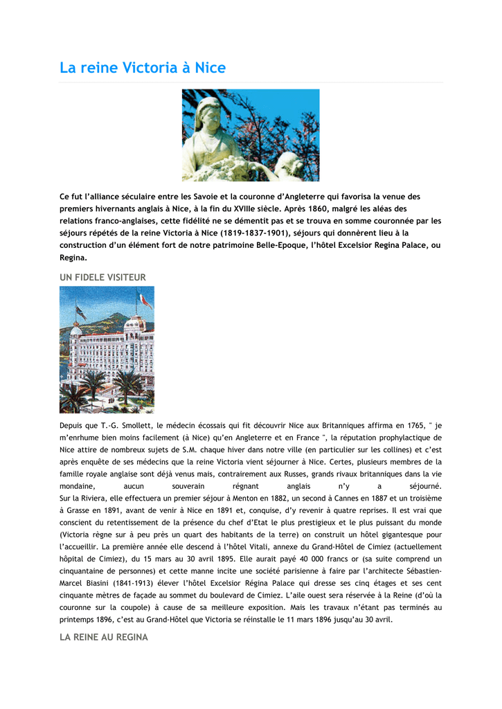 après enquête de ses médecins que la reine Victoria vient séjourner à Nice. Certes, plusieurs membres de la