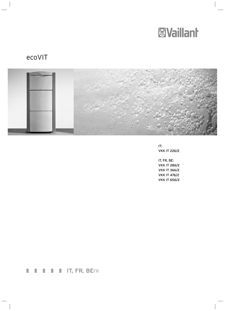 ecoVIT IT: VKK IT 226/2 IT, FR, BE: VKK IT 286/2 VKK IT 366/2 VKK IT 476/2 VKK IT 656/2 IT, FR, BEFR Pour l'installateur Notice d'installation et d'entretien ecoVIT Chaudière à condensation à gaz VKK IT 286/2 VKK IT 366/2 VKK IT 476/2 VKK IT 656/2 FR, BEBE FRFR Table des matières Table des matières 5.5 5.6 Garantie constructeur (France) . . . . . . . . . . . .27 Condition de garantie (Belgique) . . . . . . . . . .27 6 6.1 6.2 6.3 6.4 Adaptation à l'installation de chauffage . 27 Réglage de la charge partielle . . . . . . . . . . . . .27 Réglage de la temporisation de la pompe . . 28 Réglage de la durée de blocage du brûleur 29 Réglages à effectuer lors du raccordement d'installations solaires . . . . . . . . . . . . . . . . . . . 29 Mise au point des intervalles d'entretien et affichage de l'entretien . . . . . . . . . . . . . . . . . . 30 Mémorisation/appel de son propre n° de téléphone dans le système DIA . . . . . . . . .32 Remarques relatives à la documentation . . . . . . 3 1 1.1 1.2 1.3 1.4 1.5 1.5.1 1.5.2 1.6 Description de l'appareil . . . . . . . . . . . . . . . 4 Récapitulatif du type FR . . . . . . . . . . . . . . . . . . .4 Récapitulatif du type BE . . . . . . . . . . . . . . . . . . .4 Marquage CE . . . . . . . . . . . . . . . . . . . . . . . . . . . . .5 Utilisation conforme de l'appareil . . . . . . . . . . .5 Conception et fonctionnement de la chaudière ecoVIT . . . . . . . . . . . . . . . . . . . . . . . . .6 Eléments fonctionnels. . . . . . . . . . . . . . . . . . . . .6 Raccords au dos . . . . . . . . . . . . . . . . . . . . . . . . . .7 Déclaration de conformité . . . . . . . . . . . . . . . . 8 2 2.1 Consignes de sécurité/règlements . . . . . . 9 Consignes de sécurité . . . . . . . . . . . . . . . . . . . . .9 3 3.1 3.2 3.3 Montage . . . . . . . . . . . . . . . . . . . . . . . . . . . .10 Etendue de livraison . . . . . . . . . . . . . . . . . . . . . 10 Lieu d'installation. . . . . . . . . . . . . . . . . . . . . . . . 10 Ecarts minimaux à observer lors de l'installation . . . . . . . . . . . . . . . . . . . . . . . . . . .11 Dimensions . . . . . . . . . . . . . . . . . . . . . . . . . . . . . 12 3.4 4 4.1 4.2 4.3 4.4 4.4.1. 4.4.2 4.5 4.5.1 4.5.2 4.6 4.7 4.8 4.8.1 4.8.2 4.8.3 4.8.4 4.9 5 5.1 5.1.1 5.1.2 5.2 5.2.1 5.2.2 Installation. . . . . . . . . . . . . . . . . . . . . . . . . .13 Préparation à l'installation . . . . . . . . . . . . . . . . 13 Raccord gaz. . . . . . . . . . . . . . . . . . . . . . . . . . . . . 14 Raccordement côté chauffage. . . . . . . . . . . . . 14 Raccordement du ballon d‘eau chaude sanitaire . . . . . . . . . . . . . . . . . . . . . . . . . . . . . . . . 15 Raccordement VIH K 300/actoSTOR . . . . . . . 15 VIH 120...500. . . . . . . . . . . . . . . . . . . . . . . . . . . . 15 Passage pour conduite d'évacuation des condensats . . . . . . . . . . . . . . . . . . . . . . . . . . 16 Montage du passage pour conduite d'évacuation des condensats . . . . . . . . . . . . . . 16 Remplissage du siphon . . . . . . . . . . . . . . . . . . . 16 Conduite d'air/des gaz d'échappement . . . . . 17 Intégration dans une installation solaire . . . . 17 Raccordement électrique . . . . . . . . . . . . . . . . . 17 Raccordement de la ligne d'alimentation . . . 18 Raccordement de régulateurs et d'accessoires . . . . . . . . . . . . . . . . . . . . . . . . . . . . 19 Câblage VKK 226 à VKK 366 . . . . . . . . . . . . . . 21 Câblage VKK 476 à VKK 656. . . . . . . . . . . . . .22 Boîtier accessoires TECTRONIC. . . . . . . . . . . .23 Mise en fonctionnement . . . . . . . . . . . . . . 23 Remplissage de l'installation . . . . . . . . . . . . . .23 Préparation de l'eau de chauffage . . . . . . . . .23 Remplissage du siphon . . . . . . . . . . . . . . . . . . .24 Contrôle du réglage du gaz . . . . . . . . . . . . . . .24 Réglage du gaz effectué en usine . . . . . . . . . .24 Vérifier la pression de raccordement (pression d'écoulement du gaz) . . . . . . . . . . .24 5.2.3 Contrôle de la teneur en CO2 . . . . . . . . . . . . . 25 5.3 Contrôle fonctionnel de l'appareil. . . . . . . . . 25 5.4 Information de l'utilisateur. . . . . . . . . . . . . . . 26 2 6.5 6.6 7 7.1 7.2 7.3 7.4 7.4.1 7.4.2 7.4.3 7.4.4 7.5 7.6 7.6.1 7.6.2 7.6.3 7.7 Inspection et entretien . . . . . . . . . . . . . . . 33 Consignes générales . . . . . . . . . . . . . . . . . . . . .33 Consignes de sécurité . . . . . . . . . . . . . . . . . . . .33 Vue d’ensemble des travaux d'entretien . . . 34 Entretien du brûleur . . . . . . . . . . . . . . . . . . . . 35 Démontage du brûleur . . . . . . . . . . . . . . . . . . 35 Nettoyage de la chambre de combustion . . 35 Contrôle du brûleur . . . . . . . . . . . . . . . . . . . . . 35 Montage du brûleur . . . . . . . . . . . . . . . . . . . . . 35 Nettoyage du siphon . . . . . . . . . . . . . . . . . . . . 36 Remplissage/vidange de l’appareil . . . . . . . . 36 Remplissage de l'appareil et de l'installation36 Vidange de l'appareil . . . . . . . . . . . . . . . . . . . . .37 Vidange de l'installation . . . . . . . . . . . . . . . . . .37 Test de fonctionnement . . . . . . . . . . . . . . . . . .37 8 8.1 8.1.1 8.1.2 8.1.3 8.1.4 8.1.5 8.2 8.3 8.3.1 8.3.2 8.3.3 8.3.4 8.3.5 8.3.6 8.3.7 8.3.8 Détection des pannes . . . . . . . . . . . . . . . . 38 Diagnostic . . . . . . . . . . . . . . . . . . . . . . . . . . . . . 38 Codes d'état . . . . . . . . . . . . . . . . . . . . . . . . . . . 38 Codes de diagnostic. . . . . . . . . . . . . . . . . . . . . 38 Codes pannes . . . . . . . . . . . . . . . . . . . . . . . . . . . 41 Enregistrement des pannes . . . . . . . . . . . . . . 43 Programmes de contrôle . . . . . . . . . . . . . . . . 43 Liste des pièces de rechange. . . . . . . . . . . . . 43 Remplacement de pièces . . . . . . . . . . . . . . . . 45 Consignes de sécurité . . . . . . . . . . . . . . . . . . . 45 Remplacement du brûleur . . . . . . . . . . . . . . . 45 Remplacement des électrodes . . . . .