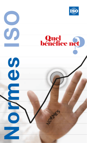 Normes ISO ? Quel bénéfice net ISO en bref L’ISO est l’Organisation internationale de normalisation. L’ISO est composée de quelque 164* membres qui sont les instituts nationaux de normalisation de pays industrialisés, en développement et en transition, de toutes tailles et de toutes les régions du monde. La collection de l’ISO compte actuellement plus de 19 200* normes, qui fournissent au monde économique, aux gouvernements et à la société dans son ensemble des outils concrets pour les trois volets – économique, environnemental et sociétal – du développement durable. Les normes ISO apportent une contribution positive au monde dans lequel nous vivons. Elles facilitent le commerce, favorisent le partage des connaissances et contribuent à la diffusion du progrès technologique et des bonnes pratiques de management et d’évaluation de la conformité. Les normes ISO offrent des solutions et des avantages à la quasi-totalité des secteurs d’activité de l’économie – agriculture, bâtiment, ingénierie mécanique, fabrication, distribution, transports, soins de santé, technologies de l’information et de la communication, environnement, énergie, management de la qualité, évaluation de la conformité et services. L’ISO n’élabore que des normes requises par le marché. Les travaux sont menés à bien par des experts directement issus des secteurs de l’industrie, de la technique et de l’économie qui ont identifié le besoin d’une norme et qui l’appliquent par la suite. À ces experts peuvent s’adjoindre d’autres spécialistes représentant des organismes gouvernementaux, des laboratoires d’essais, des groupements de consommateurs, des milieux universitaires, et des organisations internationales gouvernementales et non gouvernementales. Une Norme internationale ISO représente un consensus mondial sur les connaissances sur un sujet ou processus donné. *mai 2012 L’ISO (Organisation internationale de normalisation) est le producteur et éditeur de plus de 19 200 Normes internationales d’application volontaire, qui offrent des avantages aux entreprises, aux gouvernements et à la société dans son ensemble. ZWL, VND, GRD, AMD, XDR, CVE, MZE, PT NOK, SKK, SEK, CZK, CSK, GMD, MKD, HNL, SLL, MDL, ROL, RON, BGL, BGN, SZL, M TPE, EUR, CHE, ANG, AWG, NLG, HUF, AD AFA, AFN, XAG, MGA, THB, PAB, ETB, VEB, V HKD, SBD, JMD, BBD, LRD, NAD, NZD, SG BHD, IQD, JOD, KWD, LYD, RSD, CSD, AOA, AOK, AON, AOR, MMK, GEL, LVL, AL HTG, PYG, UAH, PGK, LAK, HRK, MWK, ZMK ITL, SML, VAL, LTL, CYP, EGP, FKP, GIP, IEP, LB SHP, SDP, SDG, SYP, TRL, TRY, GBP, LSL, AIM AZN, TMM, TMT, DEM, BAM, FIM, MZM, MZ TND, YUD, YUM, AED, MAD, STD, AUD, BS BOB, GHC, CRC, SVC, NIC, NIO, DKK, EEK, BOV, ERN, NGN, BTN, XAU, MRO, TOP, XPD, SRD, TWD, TTD, USD, USS, USN, ZWD, ZW Mais quelles sont les retombées économiques des BEF, BIF, KMF, CDF, DJF, FRF, GNF, LUF, M normes ISO BMD, pour les paysXOF, et les entreprises ? Quel XPF, enCAD, BZD, BND, KYD, XCD,XFU, FJD, CH GY RWF, CHF, XAF, XFO, est le bénéfice net ? Vous trouverez dans cette brochure des exemples chiffrés montrant l’intérêt de mettre en œuvre des normes ISO ou d’autres normes consensuelles d’application volontaire : 1. Pour l’économie mondiale et diverses économies nationales 2. Pour des entreprises dans différents secteurs ou différents pays. Une série d’études ISO/CEI sur les avantages économiques et sociaux des normes – dont proviennent bon nombre des exemples de cette brochure – peut être consultée à l’adresse : www.standardsinfo.net/info/benefits/benefits.html (en anglais) Normes ISO – Quel bénéfice net ? 1 Impact mondial D’après les estimations de l’Organisation pour la coopération et le développement économiques (OCDE) et du Département américain du commerce, les normes et les activités associées d’évaluation de la conformité (pour vérifier que produits et services respectent certaines normes) ont un impact sur 80 % du commerce mondial des marchandises L’Organisation mondiale du commerce (OMC) exige de ses membres qu’ils utilisent des normes internationales comme celles de l’ISO afin d’éviter que des normes nationales ou régionales ne créent des obstacles techniques au commerce 2 Normes ISO – Quel bénéfice net ? Impact national Les études macroéconomiques sur la contribution des normes à la croissance économique nationale montrent que : La normalisation contribue directement à la croissance de l’économie en France, à raison de 0,81 %, soit près de 25 % de la progression du PIB En Nouvelle-Zélande, les gains au niveau macroéconomique tiennent à une production plus efficace (productivité du travail) et à une meilleure prise de décision (productivité du capital). Les normes sont un puissant levier économique, et une telle dynamique pourrait à long terme déboucher sur une progression de 1 %, soit NZD 2,4 milliards, du PIB du pays Au Canada, avec l’augmentation des normes mises en œuvre entre 1981 et 2004, la productivité du travail a progressé de 17 % et le taux de croissance de l’économie (PIB réel) de 9 %. Sans ces normes, le PIB réel aurait été inférieur de CDN 62 milliards Normes ISO – Quel bénéfice net ? 3 En quarante ans (jusqu’à 2002), avec 1 % de normes australiennes en plus, la productivité économique du pays s’est élevée de 0,17 %. En outre, au même titre que les dépenses de recherche et développement, les normes participent à la constitution d’un capital de connaissances : en augmentant de 1 % ce capital, on peut améliorer la productivité de 0,12 % Les avantages économiques de la normalisation se situent à près de 1 % du PIB en Allemagne, où la contribution des normes à la croissance économique est bien plus importante que celle des brevets ou des licences. Les secteurs de l’industrie allemande tournés vers l’exportation se sont servis des normes pour ouvrir de nouveaux marchés