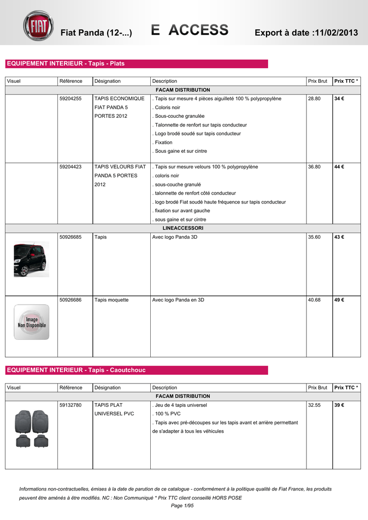 Fiat Panda (12-...) Export à date :11/02/2013