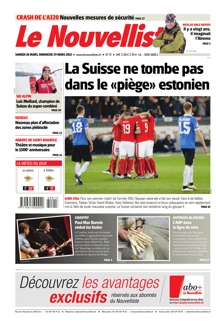 CRASH DE L’A320 Nouvelles mesures de sécurité PAGE 27 NICOLAS HALE-WOODS Il y a vingt ans, il imaginait l’Xtreme PAGE 5 LOUIS DASSELBORNE SAMEDI 28 MARS, DIMANCHE 29 MARS 2015 www.lenouvelliste.ch N 72 0 CHF 2.70/€ 2.70 J.A. - 1950 SION 1 xd - jh KEYSTONE La Suisse ne tombe pas dans le «piège» estonien SKI ALPIN Loïc Meillard, champion de Suisse du super-combiné PAGE 20 NENDAZ Nouveau plan d’affectation des zones plébiscité PAGE 12 ABBAYE DE SAINT-MAURICE Théâtre et musique pour le 1500e anniversaire PAGE 16 en plaine à 1500m 1° 16° -1° 8° KEYSTONE LA MÉTÉO DU JOUR EURO 2016 Pour son premier match de l’année 2015, l’équipe nationale a fait son travail. Face à de faibles Estoniens, Fabian Schär, Granit Xhaka, Haris Seferovic (les trois buteurs) et leurs coéquipiers se sont rapidement mis à l’abri de toute mauvaise surprise. La Suisse conserve son troisième rang du groupe E. PAGE 19 COUNTRY ASPERGES BLANCHES Paul Mac Bonvin séduit les foules L’AOP dans la ligne de mire A Conthey, jeudi soir, ils étaient un millier à applaudir le musicien d’Arbaz, puis l’artiste mondialement connu Albert Lee. Mais qui sont donc ces fans de country? Reportage au milieu de ces spectateurs venus surtout pour soutenir le régional de l’étape. Dans la région de Martigny, la cueillette sous tunnel a commencé, mais aujourd’hui c’est la certification du légume – l’appellation d’origine protégée – qui est visée. Et si l’idée semble bonne et, surtout, réalisable, le chemin sera encore long. PAGE 15 PAGE 4 SACHA BIT TEL SACHA BITTEL PUBLICITÉ Découvrez les avantages exclusifs réservés aux abonnés du Nouvelliste Rue de l’Industrie 13, 1950 Sion – Tél. 027 329 75 11 Rédaction: [email protected] Mortuaires: Tél. 027 329 76 42 – [email protected] Retrouvez l’intégralité de nos offres sur http://aboplus.lenouvelliste.ch Service client: 027 329 78 90 – [email protected] SAMEDI 28 MARS 2015 2 DÉBRIEFING xd - jh DRÔLE DE SEMAINE Tant bien chez nous! Tu as vu comment? Chez nous, en Valais, y a pas tant de souci. Si t’enlèves Bourg-Saint-Pierre et Zwischbergen, c’est Bisounoursland. OLIVIER HUGON Bourg-Saint-Pierre… T’es JOURNALISTE d’jà allé outre en haut là-haut? C’est pas compliqué: y a plus que 200 pelés qu’osent habiter là. Les autres se sont dézingués parmi à la kalach’ pour garder la main sur le trafic de drogue pis sur les prostiputes du Joe Bar. Du coup, sur le podjoume de la criminalité en Suisse, troisièmes, les Bordillons, fierté du canton, plus forts que le FC Sion. Cheuleuleu! Tout ça pour dire que, quand on aura refourgué ce bled aux Rizott’ (y a juste à le pousser un poil au fond du tunnel), on sera vraiment le canton le plus sûr du monde de Suisse. Comme t’es pas tant vif ce matin – c’est samedi, c’est normal, t’es la moindre au CHUV, t’as eu jeudredi avec les copains du foot, pis vendredi t’avais souper de la cagnotte – je te fais une piquouze de rappel des statistiques de la police à Oskar. 1. La ouature. Tu crois pas, mais y a bientôt plus de morts sur les routes valaisannes. Comprends pas. D’après les autres, on roule tout le temps bourrés dans des Soubiches Imprezz’ à 280 bourrins sous le capot. Légende urbaine ceci! Regarde les Vaudois: y roulent comme des couillons à 120 sur l’autoroute pis y sont tout le temps sur le toit! 2. La drauge. Hééémmm mais la saloperie ici. Heureusement que Djeu nous a mis dans un coin avec des vignes. Comme ça on peut picoler pas cher, pis on évite la spirale infernale de la marirouana, du pschit et pis de la cocaïne-cola. 3. Les crimineuls. Varone y dit qu’y a moins de cambriolages. Merci la police. Rien du tout! Merci la Djiana. Y a plus de chasseurs que de maisons dans le canton. Les types y sont pas fous. Cambrioler chez nous, ça revient à te déguiser en chevreuil pour aller aux champis entre septembre et octobre. Patanf! On est tant bien chez nous! } UNE SEMAINE DANS LE RÉTRO ous pensons connaître les gens qui nous entourent. Foutaise. Avez-vous remarqué combien de crimes abjects (de la pédophilie au meurtre de masse) sont commis par des types qui avaient l’air tout à fait «normaux». Pareil pour Andreas Lubitz, 28 ans, ni beau ni moche, plutôt sympa, habitant encore chez papa-maman dans un petit pavillon de banlieue de Montabaur. Ses voisins, les gars du club d’aviation, ses amis, tous l’ont décrit dans un premier temps comme un type «normal», certes ré- N caché ses origines démocrates-chrétiennes et son attachement à ces valeurs. Depuis, Frédéric Sidler, le président du PDC local, n’ose plus inviter d’orateurs lors des assemblées de peur qu’il rejoigne les rangs d’un parti adverse peu après… BIEN ENTENDU C’EST OFF... Du PDC de Sion au PLR Quelques semaines avant d’intégrer le PLR, Pierre-Alain Grichting était l’invité d’honneur du PDC de Sion comme orateur. Selon les souvenirs des membres présents, le désormais candidat PLR aux Etats n’a pas R3 et les paysans haut-valaisans. Dans le Valais romand, les principaux opposants au projet de financement de Rhône 3 sont les agriculteurs. Mais il suffit de traverser la Raspille pour que ceux-ci préfèrent assurer la sécurité de la Lonza, quitte à perdre des terres agricoles. Leur position en faveur du projet du gouvernement permet de mesurer l’importance de la Lonza dans la partie germanophone du canton et de comprendre pourquoi la pollution au mercure a mis aussi longtemps avant de devenir polémique. LES MANCHETTES INTERDITES Mardi Resto à la médiathèque Place aux livres de cuisine DANS L’ŒIL DE NOS PHOTOGRAPHES Vendredi Cave incendiée L’alcool a brûlé Vendredi Swiss Tennis Yann Marti pour perdre Vendredi Ardon LA TROUPE «COCOONDANCE» SUR SCÈNE AU CROCHETAN «La metteuse en scène Rafaële Giovanola a créé un spectacle où les danseurs jouent avec leur image reflétée par des miroirs i