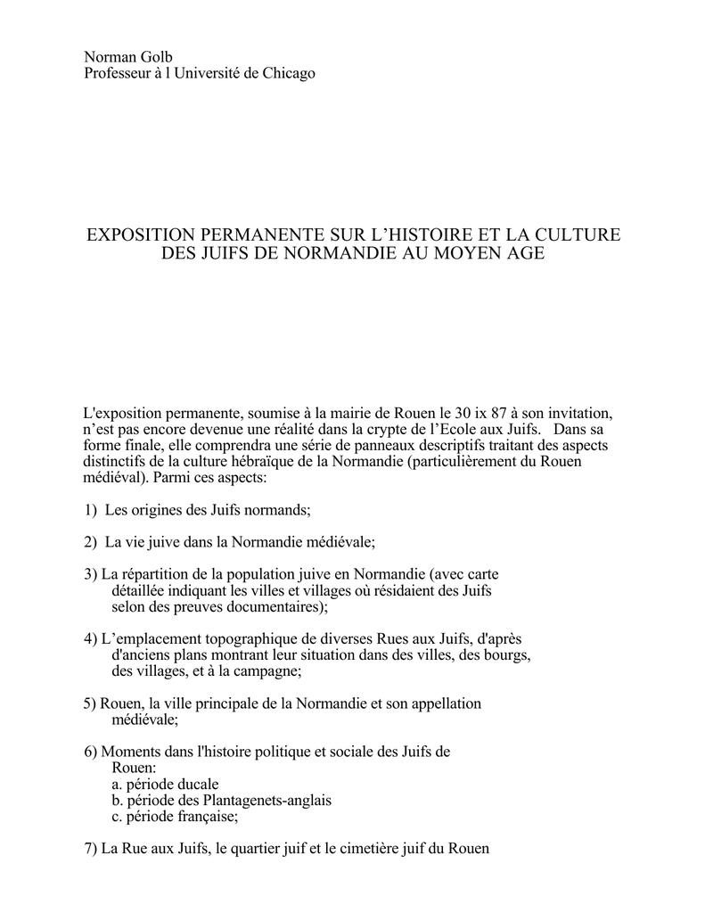 L'exposition permanente, soumise à la mairie de Rouen le 30 ix 87 à son invitation,