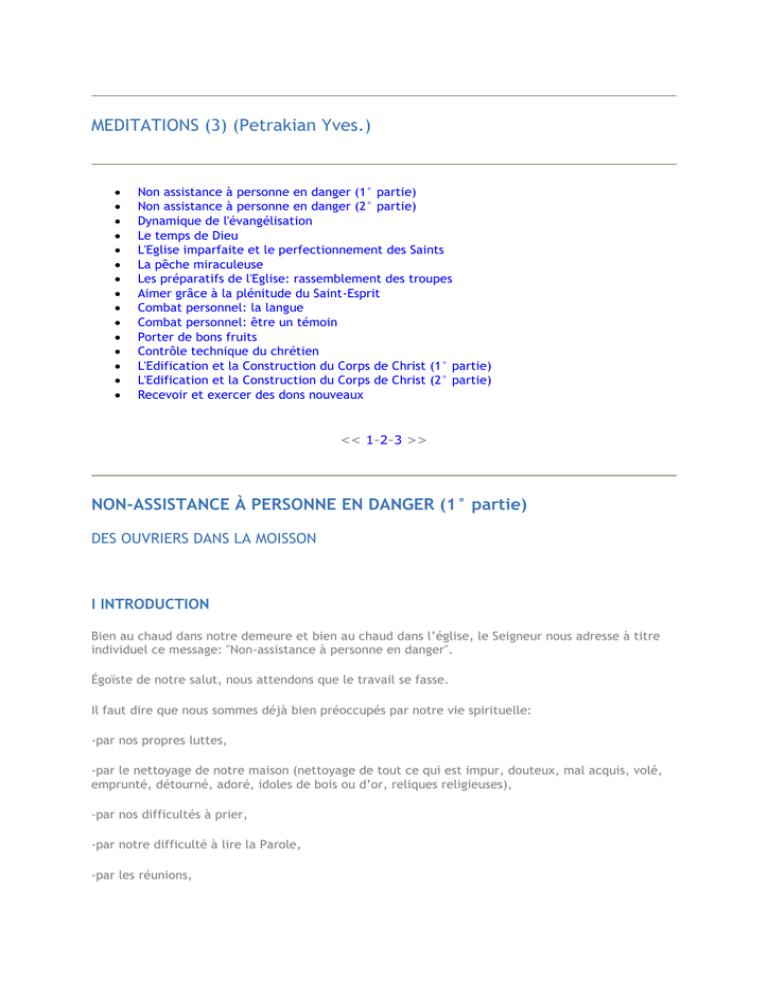 NON-ASSISTANCE À PERSONNE EN DANGER (1° partie)