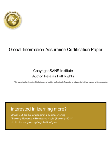 This paper is taken from the GIAC directory of certified professionals. Reposting is not permited without express written permission.