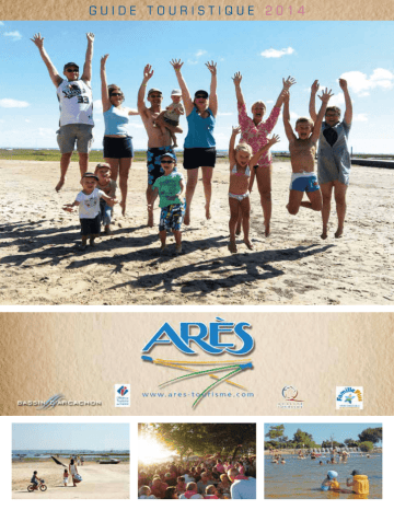 GUIDE TOURISTIQUE 2014 L’esprit Nature L’esprit Famille 53 rue du Général de Gaulle CAMPING ★★★★ LA CIGALE 2 33740 Arès Tél. : +33 (0)5 56 60 22 59 www.camping-lacigale-ares.com L’esprit Vélo OFFICE DE TOURISME D’ARÈS HORAIRES D’OUVERTURE TOURIST OFFICE OF ARÈS - AMT FÜR TOURISMUS VON AREN OPENING HOURS - ÖFFNUNGSZEITPLÄNE Place Weiss - 33740 ARÈS Tél : +33 (0)5.56.60.18.07 E mail : [email protected] Web : www.ares-tourisme.com Pour connaître nos horaires d’ouverture FLASHEZ MOI La ville d’Arès est partenaire avec la ville Andorrane de Canillo Arès is partnering with canillo (principality of Andorra) Arès der Stadt ist mit der Stadt Canillo Andorra Partnerschaft Le mot du Maire Bienvenue dans notre commune sise au cœur d’une nature encore intacte, sur les rives du Bassin d’Arcachon. Arès se découvre et s’apprécie en amoureux, en famille ou entre amis, le temps d’une promenade dans les Près Salés, d’une escale au port ostréicole pour admirer un coucher de soleil, d’une baignade sur le plan d’eau de Saint Brice, ou le temps d’un séjour plein de surprises. Mais ne vous y trompez pas : goûter aux charmes de notre station balnéaire, c’est prendre le risque de ne plus savoir se passer de son authenticité, de la beauté de ses sites classés, de son bord de mer propice au farniente. Vous saurez vous laisser guider vers des activités variées qui vous feront passer de la découverte de la voile, à la dégustation de produits du terroir, en passant des balades en bateau, ou des visites guidées au cœur de la faune et de la flore qui nous entourent. Vous ne manquerez pas non plus de passer quelques soirées animées concoctées pour toute la famille pour que votre séjour ne soit que plaisir de jour comme de nuit. Je vous souhaite d’excellentes vacances. Mayor welcomes you Botschaft von der Bürgermeister Welcome to our village that enjoys a reputation Welcome to our town situated in the heart of unspoiled nature on the shores of the Bay of Arcachon. Ares discovers and appreciates couple, family or friends. But make no mistake: sample the delights of our resort is to take the risk of not knowing without his authenticity, the beauty of its heritage sites, its beachfront conducive to relaxation. You will not miss either spend some evening entertainment for the whole family concocted to ensure your stay is as fun day and night. I wish you a great holiday. Willkommen zu unserer Stadt im Herzen der unberührten Natur an den Ufern der Bucht von Arcachon gelegen. Ares entdeckt und schätzt Paar, Familie oder Freunde. Aber keinen Fehler machen: probieren Sie die Köstlichkeiten von unserem Resort ist das Risiko nicht zu wissen, ohne seine Authentizität, die Schönheit seiner historischen Stätten, direkt am Strand förderlich für Entspannung nehmen. Sie werden es nicht verpassen entweder verbringen einige Abendunterhaltung für die ganze Familie ausgedacht, damit Ihr Aufenthalt so lustiger Tag und Nacht. Ich wünsche Ihnen einen schönen Urlaub. Jean-Guy PERRIERE Jean-Guy PERRIERE L’accueil personnalisé, c’est possible! A Arès, 4 experts de la destination ...pour vous ! Vous souhaitez un conseil éclairé pour votre séjour ? …n’attendez plus prenez rendez-vous, avec Julie, votre Conseillère ! Jean-Guy PERRIERE www.extra-ares.fr [email protected] 4 . . . s e i v n e s o v z e l Arès, réveArèils, wake up your desires..... Ares - lust auf. De nature En forêt, dans les réserves naturelles ou sur la plage, à pied ou en vélo, appréciez la diversité de la commune d’Arès. La Réserve Naturelle des Prés Salés. La Réserve est un site exceptionnel par sa faune et sa flore. Ce marais littoral a été classé réserve naturelle en 1983. Les Prés Salés sont ouverts au public toute l’année. L’accès y est libre et gratuit, depuis le port ostréicole d’Arès. Le camping, les vélos et les chiens sont interdits. La conche Saint Brice – Site sensible et protégé Le site offre une succession d’ambiances naturelles remarquables. La réserve est ouverte au public toute l’année. L’accès y est libre et gratuit, depuis le plan d’eau. Le camping est interdit et les chiens doivent être tenus en laisse. Of nature Natur “La Réserve Naturelle des Prés Salés” (Natural Reserve of Salted Marshes) The Natural Reserve is an exceptional place for the fauna and flora. This coastal marshes has been classified natural reserve in 1983. The reserve are open to the public the whole year. Access is free, from the “Port Ostréicole” (habor) of Ares. Camping, bikes and dogs are prohibited. Die Marsch Die Einzigartigkeit des ausgewiesenen Naturschutzgebietes beruht auf einer Tierund Pflanzenwelt, die weder an anderer Stelle des Bassin d’Arcachon, noch im gesamten Südwesten Frankreichs zu finden ist. Gemäß anerkannter wissenschaftlicher Standards wurde dieses Gebiet 1983 zur schützenswerten Zone erklärt. Das Naturschutzgebiet ist ganzjährig geöffnet. Der Zugang am Eingang des Austernfischerhafens von Arès ist frei. Wildes Campen ist verboten, Fahrräder Hunde müssen an der Leine geführt werden. In the forest, in natural reserves and on the beach, by walking or by cycling, enjoy our wonderful flora and fauna. “Conche Saint Brice” (sensitive and protected site) The place offers a succession of outstanding natural environments. St Brice is open to the public the whole year. Access is free, from the seawater pool.. Camping and dogs are prohibited. In den Wald, Naturschutzgebieten oder am Strand, zu Fuß oder mit dem Fahrrad, genießen Sie die Vielfalt der Stadt Ares. Die „Conche de Saint-Brice“ Dessen Umgebung bietet eine ganze Reihe unterschiedlicher Landschaftsformen. 5 Entre terre et mer 8Km (2h30) Circuits de 2,3Km (1h30) Balade familiale dans les Prés Salés Embarquez votre itinéraire sur votre smartphone Embarquez votre itinéraire sur votre smartphone Infos pratiques : Attention zone inondable