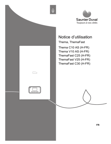 Toujours à vos côtés Notice d’utilisation Thema, ThemaFast Thema C10 AS (H-FR) Thema V10 AS (H-FR) ThemaFast C25 (H-FR) ThemaFast V25 (H-FR) ThemaFast C30 (H-FR) FR Sommaire Sommaire 1 1.1 1.2 1.3 1.4 1.5 1.6 1.7 1.8 1.9 1.10 1.11 1.12 1.13 2 2.1 2.2 2.3 2 3 3.1 Sécurité......................................... 4 3.2 Mises en garde relatives aux opérations ...................................... 4 3.3 Utilisation conforme ....................... 4 3.4 Danger en cas d'erreur de manipulation .................................. 5 3.5 Danger de mort en cas de fuite 3.6 de gaz ............................................ 5 3.7 Danger de mort en cas 4 d’obturation ou de fuite 4.1 des conduites des gaz de combustion .................................... 5 4.2 Danger de mort dû aux 4.3 substances explosives et inflammables.................................. 6 4.4 Danger de mort en cas de modifications apportées au 4.5 produit ou dans l'environnement du produit....................................... 6 4.6 Risque d’intoxication en cas d’apport insuffisant en air de combustion .................................... 6 4.7 Risques de brûlures avec l’eau potable chaude .............................. 6 4.8 Risques de blessures et de 5 dommages matériels en cas de maintenance ou de réparation 5.1 négligée ou non conforme ............. 7 Risques de corrosion en cas d’air 5.2 de combustion ou d’air ambiant inadapté ......................................... 7 6 Risque de dommages matériels 6.1 pour cause d’entartrage................. 7 6.2 Risque de dommages matériels 7 sous l’effet du gel........................... 7 7.1 Remarques relatives à la documentation ............................. 8 7.2 Respect des documents complémentaires applicables ........ 8 8 Conservation des documents ........ 8 Validité de la notice........................ 8 Description du produit ................ 8 Marquage CE................................. 8 Indications sur la plaque signalétique.................................... 8 Structure du produit ....................... 9 Vue d’ensemble des éléments de commande ................................ 9 Écran du produit ............................ 9 Concept de commande................ 10 Niveaux de commande ................ 10 Fonctionnement......................... 10 Ouverture des dispositifs d’arrêt........................................... 10 Mise en marche de l’appareil....... 10 Contrôle de la pression de l’installation .................................. 11 Remplissage de l'installation de chauffage ..................................... 11 Réglage de la production d’eau chaude sanitaire .......................... 12 Réglage de la température de départ du chauffage..................... 12 Sélection du mode de fonctionnement ............................ 12 Activer l’affichage des codes d’état ............................................ 13 Dépannage ................................. 13 Identification et élimination des dérangements.............................. 13 Visualisation des codes défauts ......................................... 13 Maintenance et entretien........... 13 Maintenance ................................ 13 Entretien du produit ..................... 13 Mise hors service....................... 13 Mise hors service provisoire du produit.......................................... 13 Mise hors service définitive de l’appareil ...................................... 14 Recyclage et mise au rebut ...... 14 Notice d’utilisation Thema, ThemaFast 0020195998_00 Sommaire 9 Garantie et service aprèsvente ........................................... 14 9.1 Garantie ....................................... 14 9.2 Service après-vente..................... 15 Annexe .................................................. 16 A Valeur réglables - vue d'ensemble ................................. 16 B Dépannage ................................. 16 C Codes d’état – vue d’ensemble ................................. 17 0020195998_00 Thema, ThemaFast Notice d’utilisation 3 1 Sécurité 1 Sécurité Ce produit est un générateur 1.1 Mises en garde relatives de chaleur spécialement conçu pour les installations de chaufaux opérations fage fonctionnant en circuit Classification des mises en fermé et la production d’eau garde liées aux manipulations chaude sanitaire. Les mises en garde relatives L’utilisation conforme de l’appaaux manipulations sont grareil suppose : duées à l'aide de symboles as– le respect des notices d’utilisociés à des mots-indicateurs, sation fournies avec le produit qui signalent le niveau de graainsi que les autres compovité du risque encouru. sants de l’installation Symboles d’avertissement et – le respect de toutes les condimots-indicateurs tions d’inspection et de mainDanger ! tenance qui figurent dans les Danger de mort immédiat notices. ou risque de blessures Cet appareil peut être utilisé par graves des enfants âgés d’au moins Danger ! 8 ans ainsi que des personnes Danger de mort par élecqui ne sont pas en pleine postrocution session de leurs capacités phyAvertissement ! siques, sensorielles ou menRisque de blessures létales, ou encore qui manquent gères d’expérience ou de connaisAttention ! sances, à condition qu’elles Risque de dommages aient été formées pour utilimatériels ou de menaces ser l’appareil en toute sécupour l'environnement rité, qu’elles comprennent les risques encourus ou qu’elles 1.2 Utilisation conforme soient correctement encadrées. Une utilisation incorrecte ou Les enfants ne doivent pas non conforme peut présenter un jouer avec cet appareil. Le netdanger pour la vie et la santé toyage et l’entretien courant de de l’utilisateur ou d’un tiers, l’appareil ne doivent surtout pas mais aussi endommager l’appa- être effectués par des enfants reil et d’autres biens matériels. sans surveillance. 4 Notice d