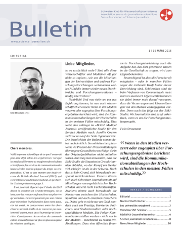 EXCURSION Bulletin Schweizer Klub für Wissenschaftsjournalismus Association suisse du journalisme scientifique Swiss Association of Science Journalism w w w.s ci ence- j ou r n a l is m . c h 1 | 15 MÄRZ 2015 EDITORIAL Liebe Mitglieder, Felix Straumann (zVg) Chers membres, Voilà la preuve scientifique de ce que l’on savait peut-être déjà selon nos expériences: lorsque les médias déforment ou exagèrent des résultats scientifiques, les services de communication des hautes écoles sont la plupart du temps co-responsables. C’est ce que montre une étude récente du British Medical Journal (BMJ), qui s’est intéressé au domaine médical, et qu’Aurélie Coulon présente en page 3. L’on pourrait objecter que l’étude du BMJ décrit la situation en Grande-Bretagne, où la lutte pour les ressources financières est plus vive qu’en Suisse. Ce n’est pourtant pas une raison pour minimiser le phénomène dans notre pays, car ici aussi, la concurrence entre les chercheurs s’accroît. Celle-ci ne concerne pas seulement l’argent, mais aussi le prestige et la carrière. Conséquence: les services de communication se transforment de plus en plus en organe de relations publiques. 1 | sk wj-bulletin 1/15 ist es tatsächlich wahr? Sind alle diese Wissenschaftler und Mediziner oft gar nicht so «spitze», wie uns die Mitteilungen der Universitäten und anderen Forschungseinrichtungen weismachen wollen? Und die immer wieder neuen Durchbrüche und Forschungssensationen – häufig übertrieben? Natürlich! Und was viele von uns aus Erfahrung kennen, ist nun auch wissenschaftlich erwiesen: Wenn in den Medien verzerrt oder zugespitzt über Forschungsergebnisse berichtet wird, sind die Kommunikationsabteilungen der Hochschulen in den meisten Fällen mitschuldig. Dies weist eine unlängst im «British Medical Journal» veröffentlichte Studie für den Bereich Medizin nach. Aurélie Coulon stellt sie uns auf der Seite 3 genauer vor. Die Deutlichkeit der Befunde stimmt dabei nachdenklich. So enthielten beispielsweise 40 Prozent der Pressemitteilungen überzogene Gesundheitsratschläge, die in der Originalpublikation nicht enthalten waren. Nun mag man einwenden, dass die BMJ-Studie die Situation in Grossbritannien abbildet, wo der Kampf um Gelder viel schärfer ist als in der Schweiz. Doch das ist kein Grund, sich hierzulande entspannt zurückzulehnen. Erstens stützen sich auch Schweizer Journalisten oft auf Mitteilungen von angelsächsischen Hochschulen und erst recht Fachzeitschriften. Zweitens nimmt auch hierzulande die Konkurrenz zwischen den Hochschulen, Spitälern und auch einzelnen Forschern zu. Dabei geht es nicht nur um Geld, sondern auch um Prestige, Karrieren, Patienten- und Studentenzahlen oder hochspezialisierte Medizin. Die Folge: Kommunikationsstellen werden – nicht nur in der Medizin – zunehmend zu reinen PRAbteilungen. Dass eine öffentlich finan- zierte Forschungseinrichtung auch die Aufgabe hat, das dort generierte Wissen in die Gesellschaft zu tragen, wird zum Lippenbekenntnis. Beunruhigend ist, dass die Forscher oft mitspielen – oder in manchen Fällen sogar die treibende Kraft hinter dieser Entwicklung sind. Schliesslich sind sie beim Verfassen von Communiqués meist intensiv involviert. Offensichtlich können sie dabei immer noch darauf vertrauen, dass die Verzerrungen und Übertreibungen von den Medien weitergegeben werden. Denn auch das folgt aus der BMJStudie: Wir Journalisten sind zu oft unkritisch, wenn es um die Forschungsmitteilungen geht. Felix Straumann «Wenn in den Medien ver zerrt oder zugespitzt über For schungsergebnisse berichtet wird, sind die Kommunika tionsabteilungen der Hoch schulen in den meisten Fällen mitschuldig. » INHALT / SOM M AIRE Editorial .................................................1 Nachruf Kurth Kocher..............................2 Les universités exagèrent ........................3 Vorschau SNF-Seminar.............................5 Rückblick Gesundheitsseminar..................6 Science journalism in Indonesia................8 News/Neue Mitglieder...........................10 ZUM TOD VON KURTH KOCHER Ästhet und guter Kollege Rosmarie Waldner, Ruth von Blarer Kurth Kocher (1943–2014) Un esthète et un collègue hors pair Notre collègue et ami Kurth Kocher est décédé le 19 novembre 2014 après une longue maladie. Collègue plein d’humour, excellent conteur, un grand esthète, il a fait partie du Comité de l’Association suisse du journalisme scientifique, dont il a été le président (1988/89). Kurth tenait en haute estime la collegialité, comme en témoigne le bulletin de l’ASJS après son élection: «Je ne décide de rien seul pour l’ASJS, notre programme naît de notre travail en commun.» C’est ainsi que nous l’avons connu, et que nous nous souviendrons de lui. 2 | sk wj-bulletin 1/15 Nach langem Leiden ist unser Kollege und Freund Kurth Kocher am 19. November 2014 gestorben. Wir halten ihn aber nicht als schwachen und leidenden Menschen in Erinnerung, sondern als witzigen Kollegen, als guten Erzähler, als fabelhaften Klavierspieler, als guten Koch und als grossen Ästheten. Er konnte fast alles, ohne Aufhebens davon zu machen. Ein paar Erinnerungsstücke dazu. Mit seinem Sprachwitz titulierte er etwa einen Fernsehkollegen, der mit Bart, Strickjacke und Birkenstocksandalen herumlief: «Er ist aus dem Oberammergauer Krippenspiel entlaufen.» Oder er mokierte sich über die Ergotherapeutin der Reha-Station Valens, die ihn eines Tages in schönster Therapeutenart aufforderte «heute machen wir zusammen eine Apfelwähe» und die sich die vom exzellenten Koch hergestellte Wähe gleich vom Ofen aus wegschnappte mit den Worten «die ist aber gut geraten». Ein Feinschmecker blieb er bis zuletzt und freute sich im Pflegheim noch, wenn man mit ihm in die Cafeteria zum Glacé-Essen eilte. Nicht nur setzte er sich nach einem Hauskonzert zum Pianisten mit Konzertdiplom ans Klavier und spielte mit ihm