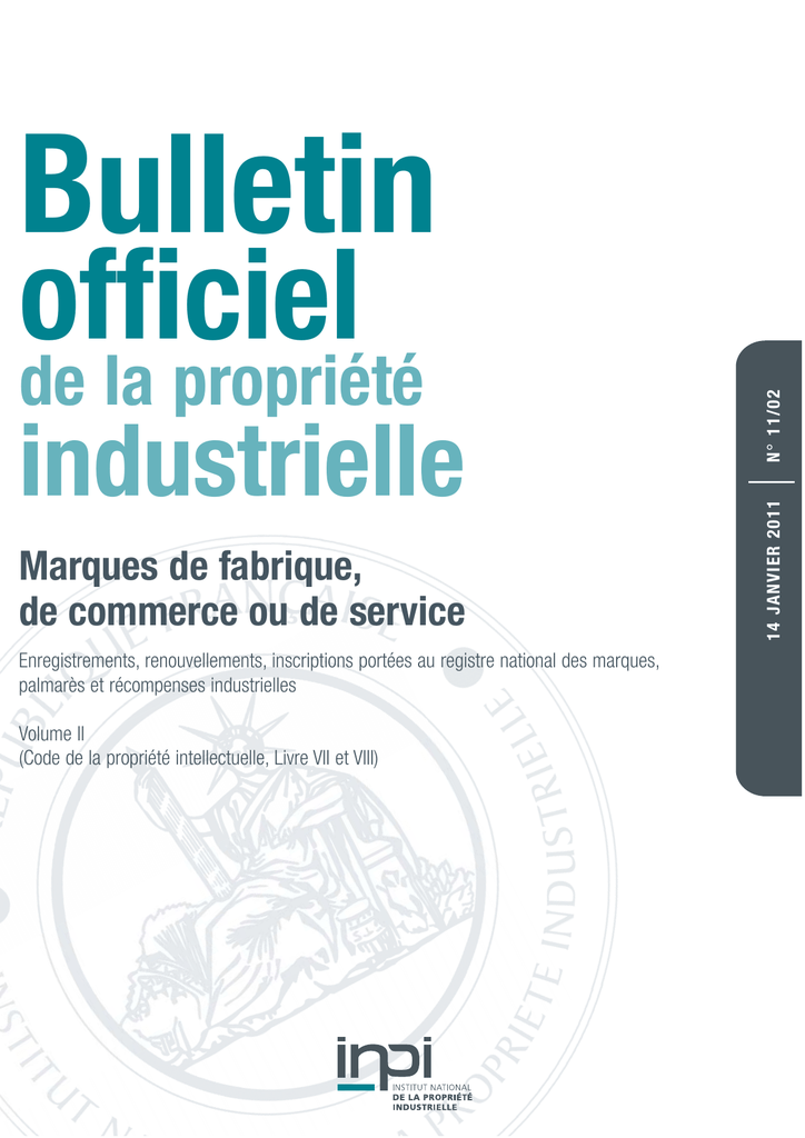 Bulletin industrielle Marques de fabrique, de commerce ou de service Enregistrements, renouvellements, inscriptions portées au registre national des marques, palmarès et récompenses industrielles Volume II (Code de la propriété intellectuelle, Livre VII et VIII) 14 JANVIER 2011 de la propriété N° 11/02 officiel BULLETIN OFFICIEL DE LA PROPRIÉTÉ INDUSTRIELLE MARQUES DE FABRIQUE, DE COMMERCE OU DE SERVICE Publication hebdomadaire en 2 volumes No 11/02 - VOL. II SOMMAIRE GÉNÉRAL de la publication 14 janvier 2011 INSTITUT NATIONAL DE LA PROPRIÉTÉ INDUSTRIELLE VOLUME I 26 bis, rue de Saint-Pétersbourg 75800 Paris Cedex 08 Téléphone : 0 820 213 213 Télécopie : 01 53 04 45 23 Adresse des délégations régionales Classification internationale des produits et services Avis relatif aux observations et oppositions concernant les demandes d’enregistrement de marques françaises Avis relatif aux observations et oppositions concernant les marques internationales Sommaire détaillé PUBLICATIONS RELATIVES AUX DEMANDES D’ENREGISTREMENT VOLUME II Adresse des délégations régionales Classification internationale des produits et services Sommaire détaillé Décisions du Directeur général de l’INPI PUBLICATIONS RELATIVES AUX ENREGISTREMENTS, AUX RENOUVELLEMENTS, AUX INSCRIPTIONS PORTÉES AU REGISTRE NATIONAL DES MARQUES ET AUX PALMARÈS ET RÉCOMPENSES INDUSTRIELLES II BOPI 11/02 - VOL. II III BOPI 11/02 - VOL. II APERÇU DU CONTENU DE LA 9e ÉDITION DE LA CLASSIFICATION INTERNATIONALE DES PRODUITS ET DES SERVICES AUX FINS DE L’ENREGISTREMENT DES MARQUES Lorsque vous complétez le formulaire CERFA de demande d’enregistrement de marque, vous devez indiquer, dans la rubrique n° 5, la liste des produits et/ou services pour lesquels vous souhaitez revendiquer une protection. Lors de l’examen de la marque par l’INPI aux fins de son enregistrement éventuel, cette liste de produits et services fait l’objet d’une attention particulière. Pour vous aider à l’établir, vous trouverez ci-après, pour chaque classe de la classification internationale des marques, un aperçu des intitulés de produits et services pour lesquels les examinateurs de l’INPI ne formulent pas d’objection. Le libellé de chaque classe n’est pas obligatoirement à reprendre tel quel et il est conseillé de choisir parmi les produits et services proposés ceux qui vous concernent directement. Cet aperçu n’est pas non plus exhaustif et vous pouvez, si vous le souhaitez, mentionner d’autres produits et services. Dans ce cas, évitez les termes vagues tels que « services divers ou accessoires », ou en langue étrangère comme « funboard » qui seront considérés comme un libellé irrégulier. PRODUITS Classe 1 : Produits chimiques destinés à l'industrie, aux sciences, à la photographie, ainsi qu'à l'agriculture, l'horticulture et la sylviculture ; résines artificielles à l'état brut, matières plastiques à l'état brut ; engrais pour les terres ; compositions extinctrices ; préparations pour la trempe et la soudure des métaux ; produits chimiques destinés à conserver les aliments ; matières tannantes ; adhésifs (matières collantes) destinés à l'industrie. Sel pour conserver, autres que pour les aliments ; sels à usage industriel ; réactifs chimiques autres qu'à usage médical ou vétérinaire ; décolorants à usage industriel. Classe 2 : Couleurs, vernis, laques (peintures), préservatifs contre la rouille et contre la détérioration du bois ; matières tinctoriales ; mordants ; résines naturelles à l'état brut ; métaux en feuilles et en poudre pour peintres, décorateurs, imprimeurs et artistes. Colorants pour boissons ou aliments ; encres d'imprimerie ; encres pour la peausserie ; enduits (peintures). Classe 3 : Préparations pour blanchir et autres substances pour lessiver ; préparations pour nettoyer, polir, dégraisser et abraser ; savons ; parfums, huiles essentielles, cosmétiques, lotions pour cheveux ; dentifrices. Dépilatoires ; produits de démaquillage ; rouge à lèvres ; masques de beauté ; produits de rasage ; produits pour la conservation du cuir (cirages) ; crèmes pour le cuir. Classe 4 : Huiles et graisses industrielles ; lubrifiants ; produits pour absorber, arroser, lier la poussière ; combustibles (y compris les essences pour moteurs) et matières éclairantes ; bougies et mèches pour l'éclairage. Bois de feu ; gaz d'éclairage. Classe 5 : Produits pharmaceutiques et vétérinaires ; produits hygiéniques pour la médecine ; substances diététiques à usage médical ; aliments pour bébés ; emplâtres, matériel pour pansements ; matières pour plomber les dents et pour empreintes dentaires ; désinfectants ; produits pour la destruction des animaux nuisibles ; fongicides, herbicides. Bains médicinaux ; bandes, culottes ou serviettes hygiéniques ; préparations chimiques à usage médical ou pharmaceutique ; herbes médicinales ; tisanes ; parasiticides ; sucre à usage médical ; alliages de métaux précieux à usage dentaire. Classe 6 : Métaux communs et leurs alliages ; matériaux de construction métalliques ; constructions transportables métalliques ; matériaux métalliques pour les voies ferrées ; câbles, fils et serrurerie métalliques non électriques ; quincaillerie métallique ; tuyaux métalliques ; coffres-forts ; minerais. Constructions métalliques ; échafaudages métalliques ; boîtes en métaux communs ; coffres métalliques ; récipients d'emballage en métal ; monuments funéraires métalliques ; objets d'art en métaux communs ; statues ou figurines (statuettes) en métaux communs ; plaques d'immatriculation métalliques. Classe 7 : Machines-outils ; moteurs (à l'exception des moteurs pour véhicules terrestres) ; accouplements et organes de transmission (à l'exception de ceux pour véhicules terrestres) ; instruments agricoles autres que ceux actionnés manuellement ; couveuses pour les œufs. Machine