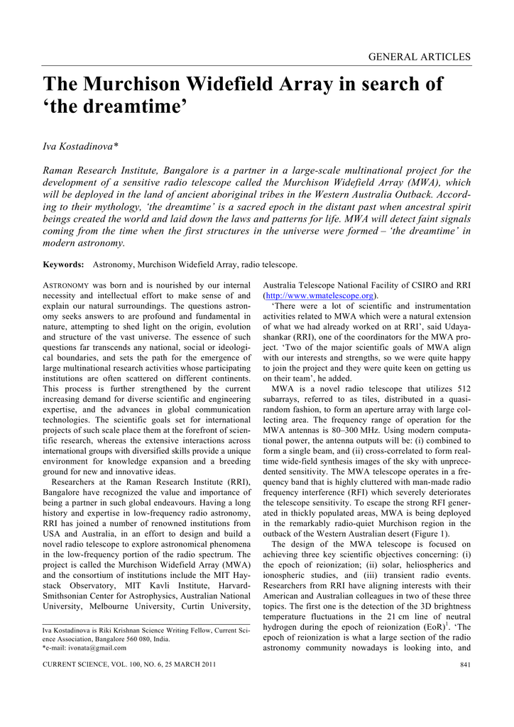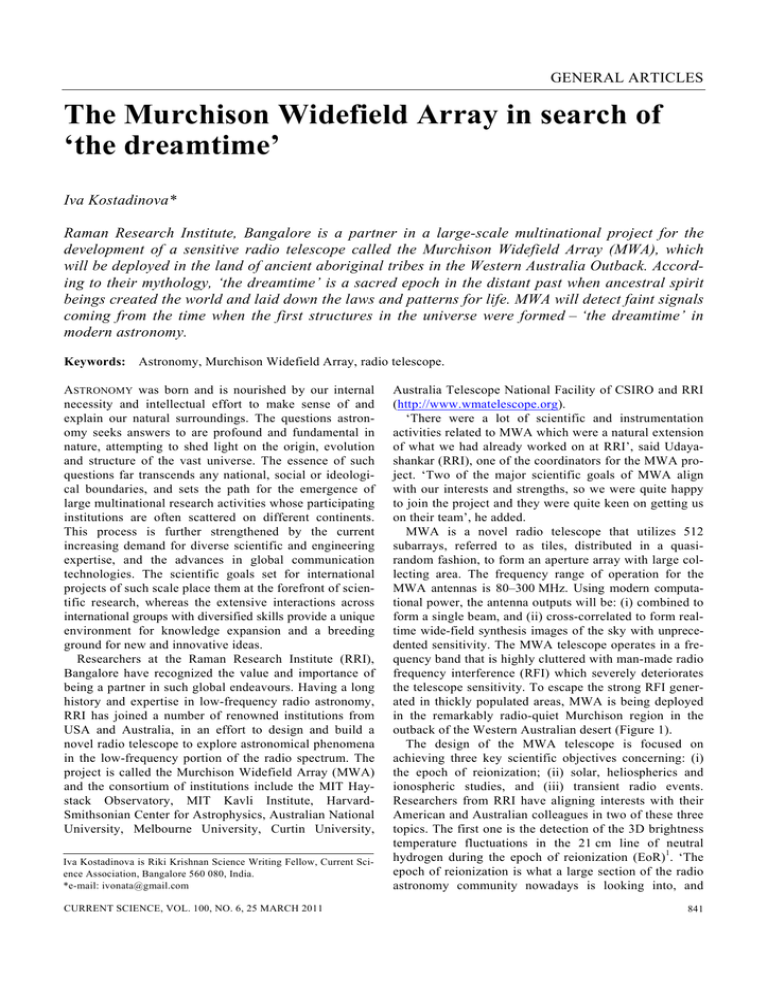 The Murchison Widefield Array in search of `the dreamtime`