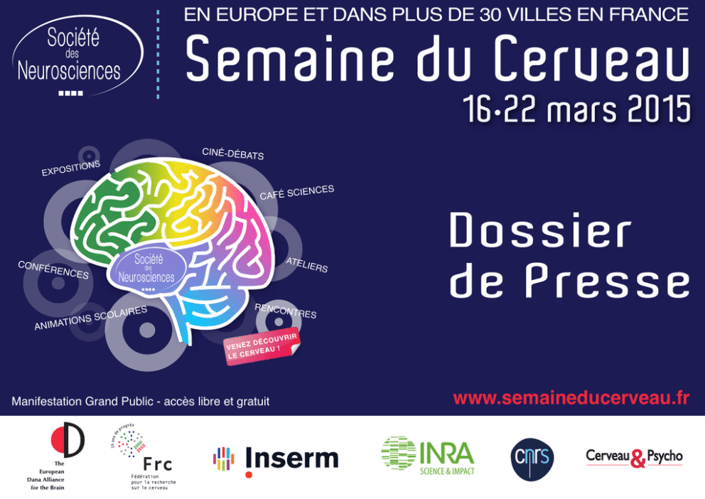 EN EUROPE ET DANS PLUS DE 30 VILLES EN FRANCE Semaine du Cerveau 16•22 mars 2015 CINÉ-DÉBAT S NS POSITIO EX IENCES CAFÉ SC CONFÉ ATEL I ERS RENCE S IRES COLA IONS S T ANIMA RENCO NTRES Dossier de Presse IR OUVR Z DÉC VENE ! U RV E A LE CE Manifestation Grand Public - accès libre et gratuit www.semaineducerveau.fr TABLE DES MATIÈRES L’Édito du coordinateur, Roland Salesse ................................................................................. Le Mot du Président, Christophe Mulle ................................................................................... Qu’est-ce que la Semaine du Cerveau ? ................................................................................. En quelques chiffres .................................................................................................................... Contact régions .............................................................................................................................. Contact presse ............................................................................................................................... Aperçu du programme 2014......................................................................................................... 2 3 4 4 4 5 6 7 L’édito Pour la 16e année, simultanément dans 62 pays dans le monde et en France, aura lieu la Semaine du Cerveau 2015 Une semaine pour découvrir le cerveau et les progrès faits par la Recherche en Neurosciences ! Cette manifestation est spectaculaire par sa dimension nationale (plus de 32 villes impliquées), par le nombre de chercheurs mobilisés, par le succès public rencontré, par la qualité de sa programmation. coordonnée par la Société des Neurosciences • plus de 2300 membres et 19 clubs thématiques • Société savante la plus importante des sociétés européennes dans ce domaine. en partenariat avec la Fédération pour la Recherche sur le Cerveau (FRC), Dana Alliance, l’INSERM, le CNRS, l’INRA et Cerveau & Psycho. Sous l’égide de la Fondation Dana Alliance. par Roland Salesse Coordinateur Le cerveau est à la une ! On relève dans les médias de plus en plus de titres comme «Cerveau - les clés de demain» ou «Le cerveau, un organe vertigineux». En effet, grâce aux progrès des connaissances et des techniques, les résultats scientifiques deviennent visibles et l’on s’émerveille de «voir le cerveau penser». La Société des Neurosciences n’a pas attendu cet engouement récent pour en informer le public et, pour la 16e année consécutive, elle organise la Semaine du Cerveau. Cette manifestation, qui se déroulera du 15 au 22 mars 2015, se veut une fête du partage, entre le grand public et les chercheurs, de la passion, de la recherche et des questionnements sur le système nerveux. L’année dernière, nos comités locaux ont mobilisé près de 680 bénévoles pour accueillir plus de 35 000 personnes dans des conférences, des ateliers scolaires, des projections de film, des pièces de théâtre, des animations. Ces manifestations sont faites pour tous, elles sont faites pour vous ! Nous vous attendons ! 3 Le mot du Président par Christophe Mulle La Société des Neurosciences regroupe près de 2300 scientifiques dont 500 doctorants qui travaillent à une meilleure compréhension du cerveau et du système nerveux normal et pathologique. Parmi ses activités, la Société des Neurosciences a pour vocation d’informer et de sensibiliser le grand public à l’importance de la recherche sur le cerveau. Chaque année au mois de mars, la Société des Neurosciences coordonne la Semaine du Cerveau. En France, cette manifestation internationale est organisée simultanément dans plus de 30 villes. C’est l’occasion pour de nombreux chercheurs, médecins, étudiants, tous bénévoles, de rencontrer le public et de partager avec lui les avancées de la recherche en neurosciences, d’en présenter les enjeux et les implications pour notre société. En espérant que vous serez encore nombreux cette année à participer à ces événements organisés par des chercheurs enthousiastes de votre région ! Qu’est-ce que la Semaine du Cerveau ? • une manifestation grand public et gratuite (sauf films en salle) • une programmation scientifique de qualité • une belle rencontre entre le public et les chercheurs • la possibilité pour tous de s’informer • une occasion unique de s’informer sur l’actualité de la Recherche En quelques chiffres • Près de 680 bénévoles impliquées sur le terrain, 29 comités scientifiques, et 35 000 personnes présentes lors des manifestations • 118 conférences grand public (dont près de 80 en milieu scolaire) • 16 cafés sciences • 32 ateliers scientifiques • 36 projections de films • 7 pièces de théâtre • 12 expositions : expositions photos, visites guidées, visites pour enfants • 4 manifestations littéraires • plus de 34 villes impliquées en France : Ajaccio-Corte, Annecy, Arles-Avignon, Bordeaux, Brest, Caen, Clermont-Ferrand, Côte d’Azur, Gap, Gif-sur-Yvette, Grenoble, Lannion-Saint-Brieuc, Lille, Limoges-Tulle, Lyon, Marseille-Aix-Cavaillon, Montbéliard, Montpellier, Nancy, Nantes, Paris, Poitiers, Romilly, Rouen, Strasbourg-Mulhouse, Toulouse, Tours, Villecresnes, Villejuif. 4 Contacts régions Ajaccio- Corte [email protected] Arles-Avignon Isabelle Le Brun [email protected] Bordeaux Coralie Lebouvier [email protected] Marie-Jo Milleliri [email protected] Isabelle Huau [email protected] Abdelhamid Benazzouz abdelhamid.benazzouz@ u-bordeaux.fr Brest Olivier Dufor [email protected] Caen Annick Brocquehaye [email protected] Chambéry Jean-Yves Maugendre jean-yves.maugendre@ ccsti-chambery.org Clermont-Ferrand Philippe Luccarini [email protected] Côte d’Azur John Pusceddu [email protected] Carole Rovere [email protected] Gap Eric Gerbaud Grenoble Lanion - Saint Brieuc Lille Nicolas Sergeant [email protected]