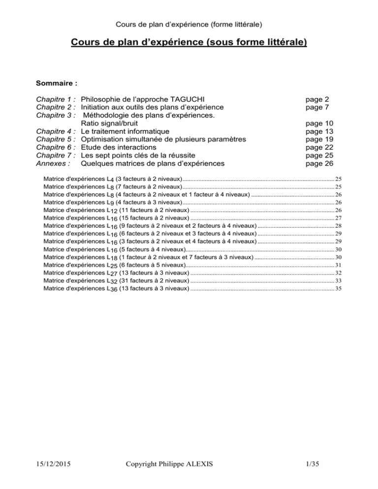 Cours complet de plan d`expérience