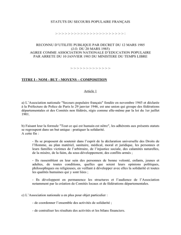 STATUTS DU SECOURS POPULAIRE FRANÇAIS
