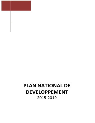 -‐ PLAN NATIONAL DE DEVELOPPEMENT 2015-‐2019 Sommaire LISTE DES TABLEAUX ........................................................................................................................... ii ACRONYMES ET ABBREVIATIONS ....................................................................................................... ii Introduction ............................................................................................................................................. 1 1. 2. Croissance inclusive et développement durable .............................................................................. 3 1.1. Les problématiques-‐clés de l’économie et de la société malagasy ......................................... 3 1.2. Les insuffisances des politiques mises en œuvre par l’Etat .................................................. 43 1.3. Les aspirations nationales et régionales ............................................................................... 46 1.4. Le volontarisme de l’Etat : la PGE ......................................................................................... 48 Le PND, un instrument d’excellence au service de la PGE ............................................................. 52 2.1. Le PND, pourquoi et pour quoi ? .......................................................................................... 52 2.2. Le processus d’élaboration du PND ...................................................................................... 54 2.3. Les grandes orientations stratégiques du développement ................................................... 55 2.4. Les axes stratégiques du développement ............................................................................. 57 2.5. Cohérence et articulation entre défis de la PGE, axes stratégiques, objectifs spécifiques, programmes avec stratégies et résultats y rattachés. ...................................................................... 61 3. Que peut espérer le peuple malgache de la mise en œuvre du PND ? ......................................... 67 4. Costing .......................................................................................................................................... 73 5. Cadre logique et système de suivi – évaluation ............................................................................ 79 6. 5.1. Système National Intégré de Suivi Evaluation ....................................................................... 79 5.2. Stratégie Nationale de Développement de la Statistique ..................................................... 79 5.3. Cadre de suivi évaluation du PND ......................................................................................... 80 5.4. Méthodologie de suivi ........................................................................................................... 81 5.5. Evaluation du Plan National de Développement .................................................................. 82 Matrice de résultats ...................................................................................................................... 84 i LISTE DES TABLEAUX ET FIGURES Tableau 1 : Croissance du PIB et revenu par habitant de 1960 à 2014. .................................................. 4 Tableau 2 : Comparaison Structure PIB, en % ......................................................................................... 4 Tableau 3 : Evolution du solde des Opérations financières 2009-‐2013 .................................................. 6 Tableau 4 : Transactions courantes 2009-‐2013 ...................................................................................... 6 Tableau 5 : Evolution des réserves en devises entre 2009 et 2013 ........................................................ 7 Tableau 6 : Principaux indicateurs de Madagascar dans le Doing Business 2015 ................................. 11 Tableau 7: Composition de la richesse tangible par tête ...................................................................... 13 Tableau 8: Degré d’atteinte des Objectifs du Millénaire pour le Développement (OMD), 2012-‐2013 23 Tableau 9: Evolution des indicateurs sur le déficit en genre, 2006-‐ 2014 ............................................ 26 Tableau 10: Situation des déficits en genre, 2014 ................................................................................ 26 Tableau 11 : REPARTITION DU PIP PAR REGION, 2013 ......................................................................... 39 Tableau 12: Indicateurs en matière d’Innovation, 2012 ....................................................................... 42 Tableau 13: Evolution de la structure du PIB entre 2014 et 2019 ........................................................ 57 Tableau 14: Evolution des investissements dans le Secteur Public et dans le Secteur Privé entre 2015-‐ 2019 ...................................................................................................................................................... 75 Tableau 15: Estimation des besoins de financement du PND pour la période 2015-‐2019 (au prix de 2014) ..................................................................................................................................................... 76 Tableau 16: Gap de Financement des dépenses dans le Secteur Public pour la période 2015-‐2019 ... 77 Tableau 17: Répartition du financement du PND dans le Secteur Public par axe stratégique ............. 78 Tableau 18: Cadre de suivi de la progression annuelle des indicateurs des programmes sectoriels ... 80 Figure 1 : Madagascar, une Nation moderne et prospère ACRONYMES ET ABBREVIATIONS ACP AGOA BIANCO BNGRC BTP CAC CHRD CHRR CHU CSB CSI CTD COMESA EAC EDBM FAO FDL Afrique Caraïbe et Pacifique African Growth and Opportunity Act Bureau Indépendant Anti-‐Corruption Bureau National de Gestion des Risque