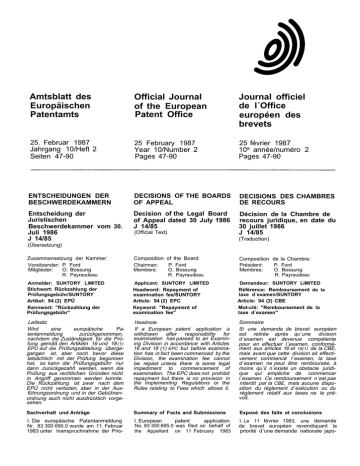 Siehe ABI. EPA 1986, 230; 244-245.